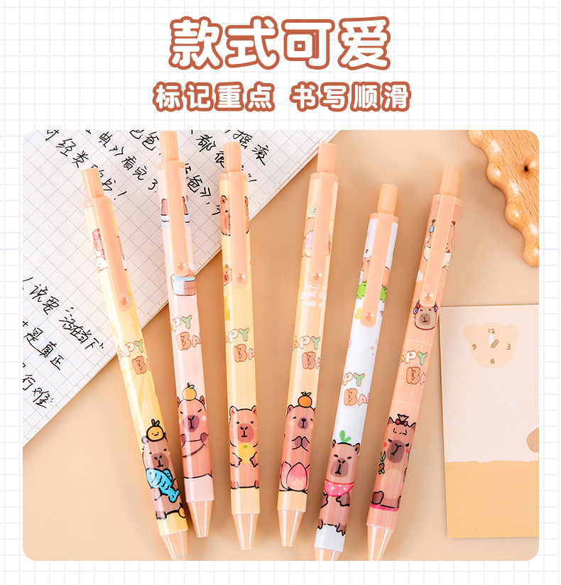 创意可爱佛系水豚按动黑色中性笔学生奖品奖励礼物礼品期末圣诞