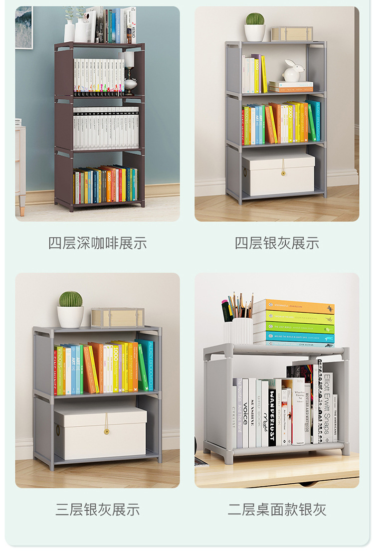 桌面简易书架落地儿童家用置物架客厅多层收纳柜储物柜防尘书柜