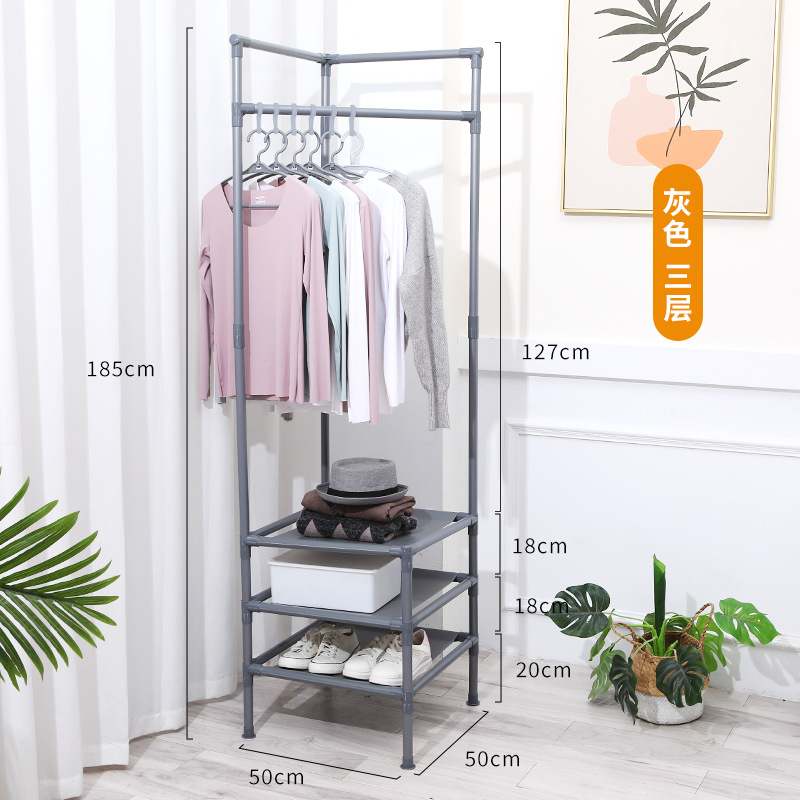 转角衣帽架落地卧室家用床头放衣服挂架简易置物架墙角挂衣收纳