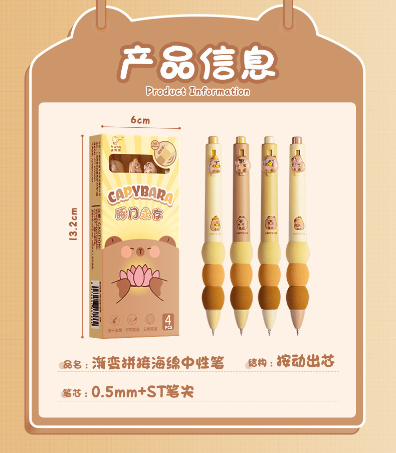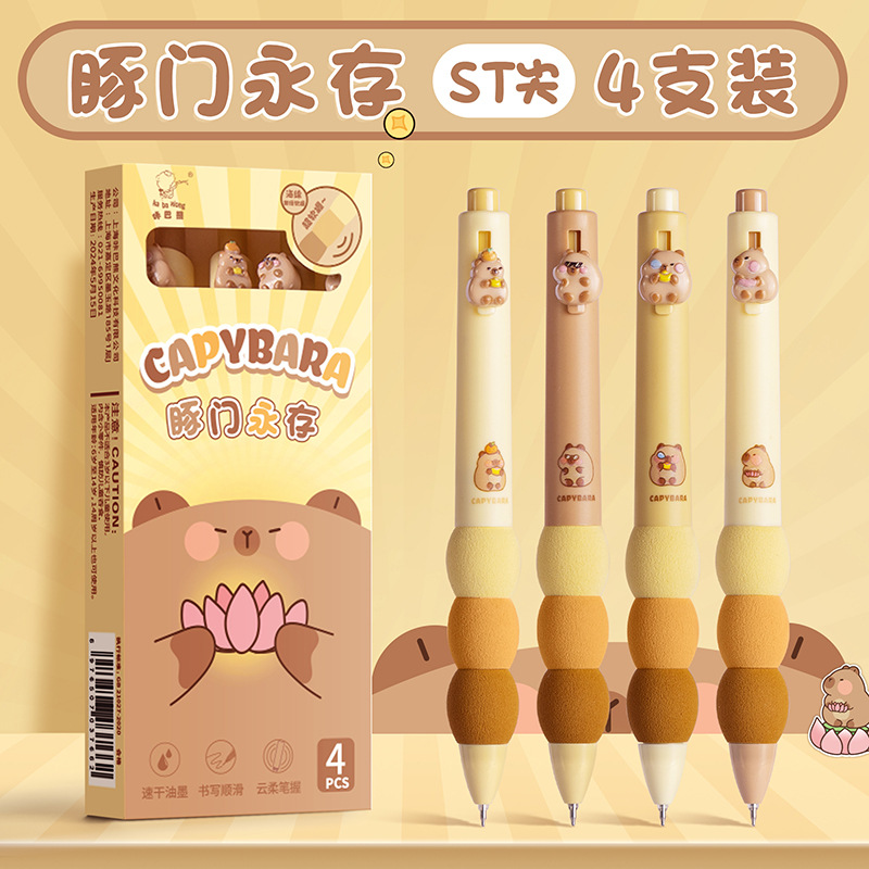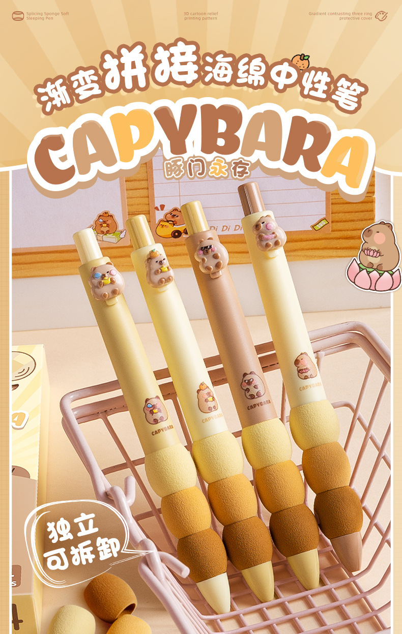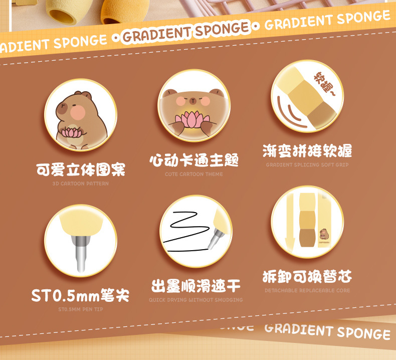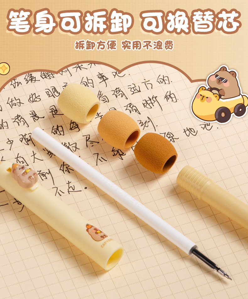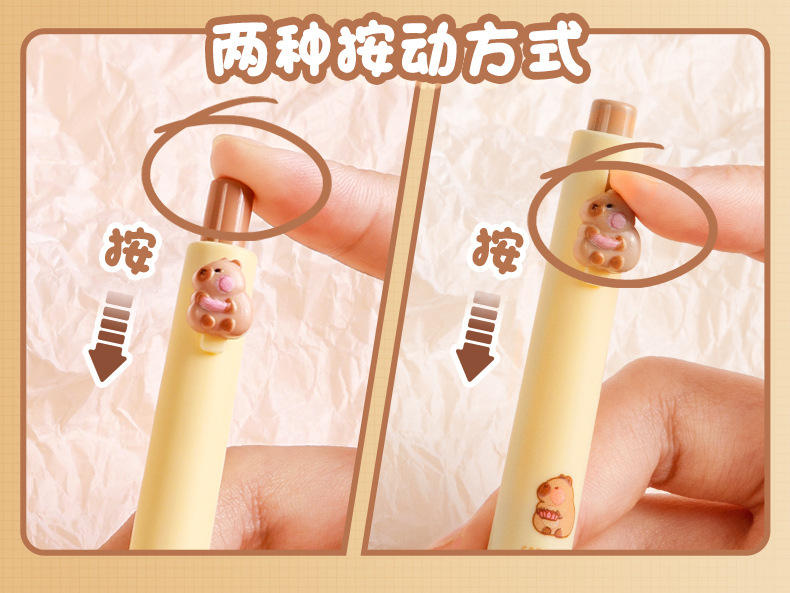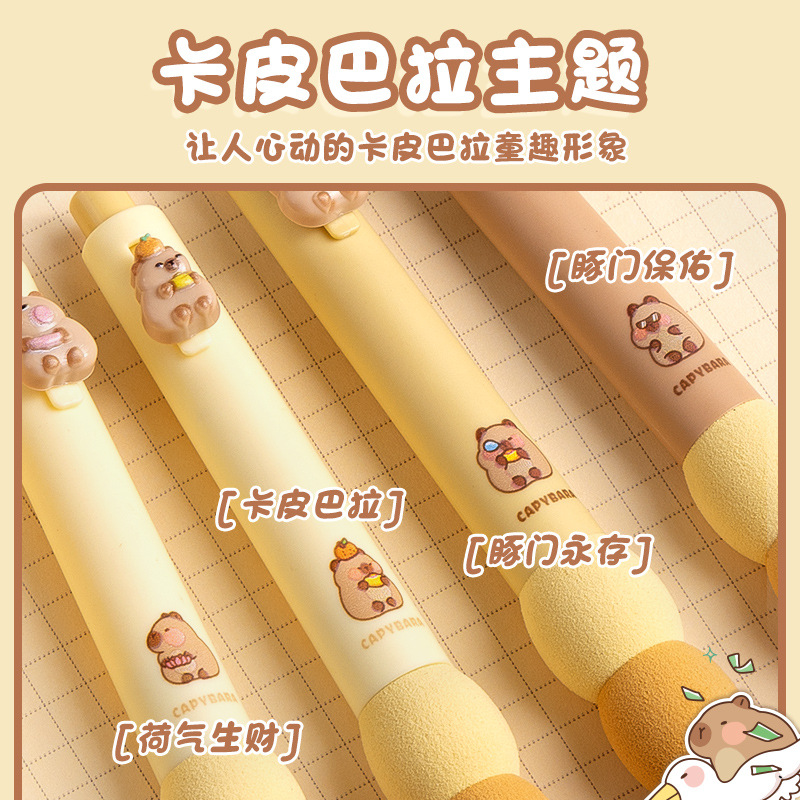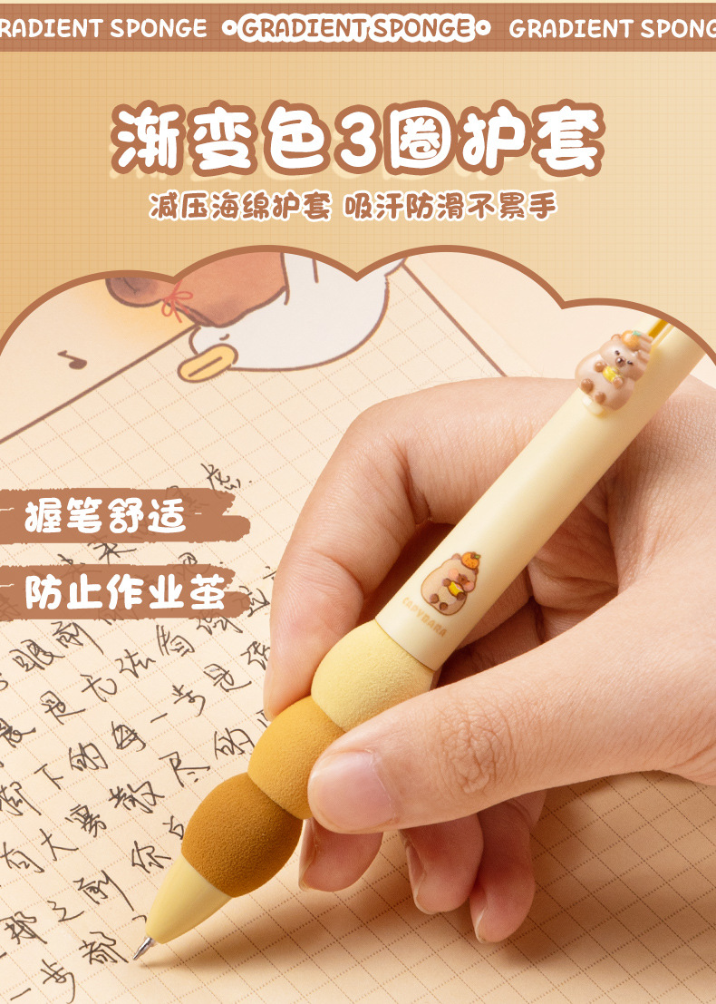 卡皮巴拉按动速干中性笔小清新学生考试刷题笔高颜值新款软握黑笔