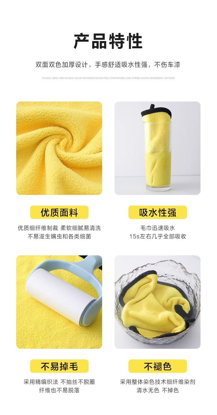 洗车毛巾双面珊瑚绒擦车布双色吸水加厚不伤车漆不掉毛擦玻璃抹布