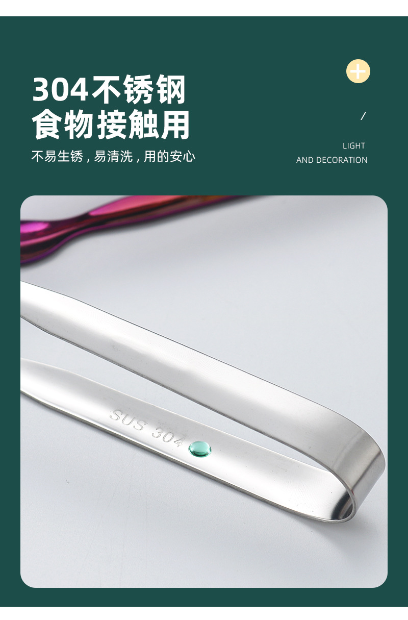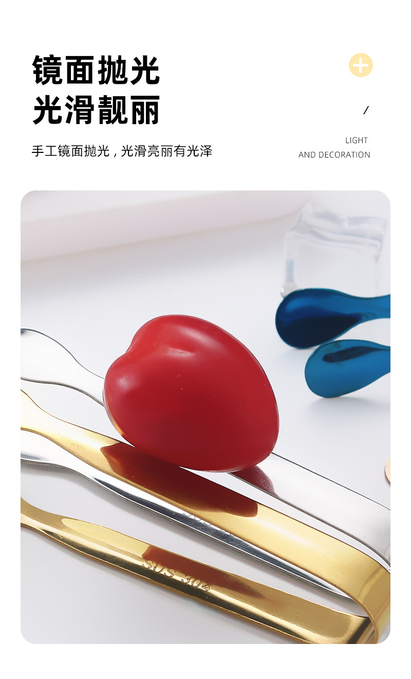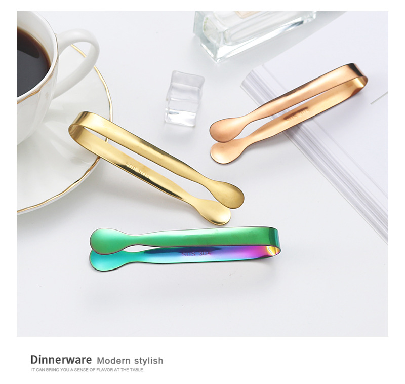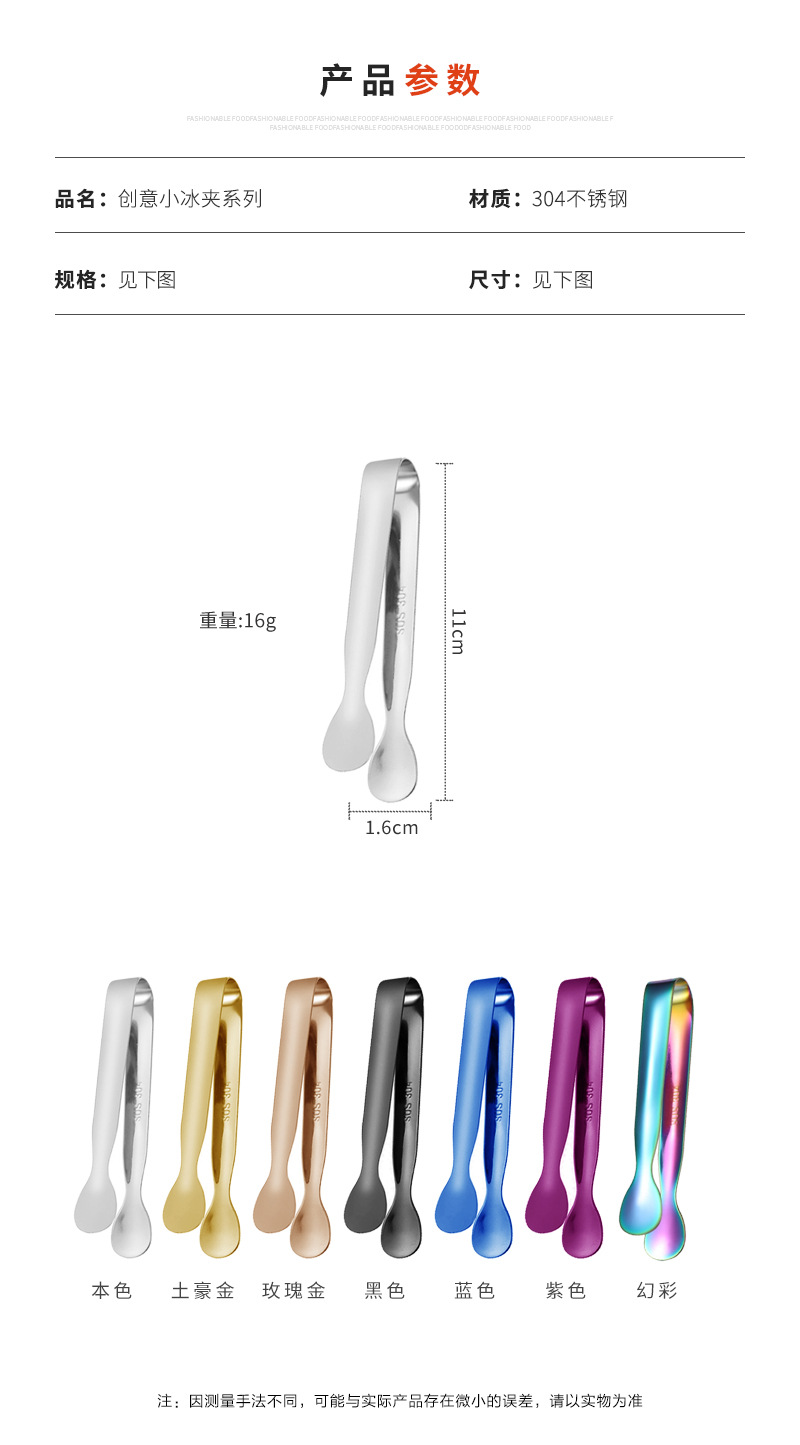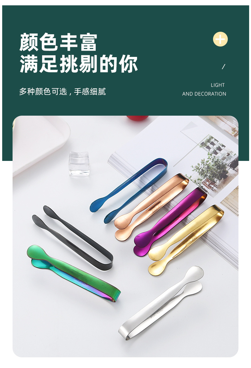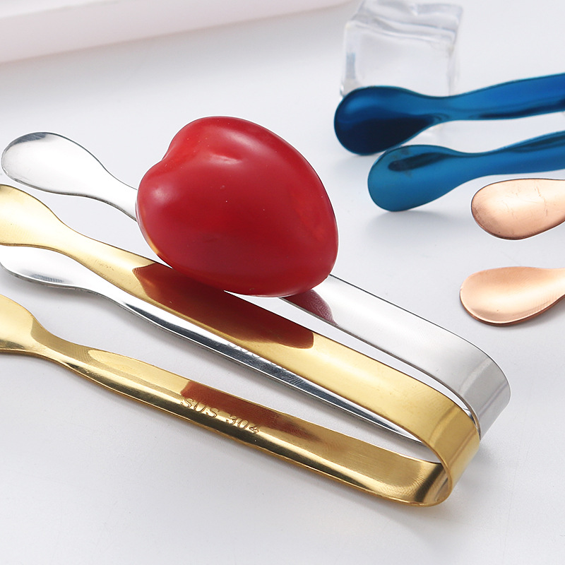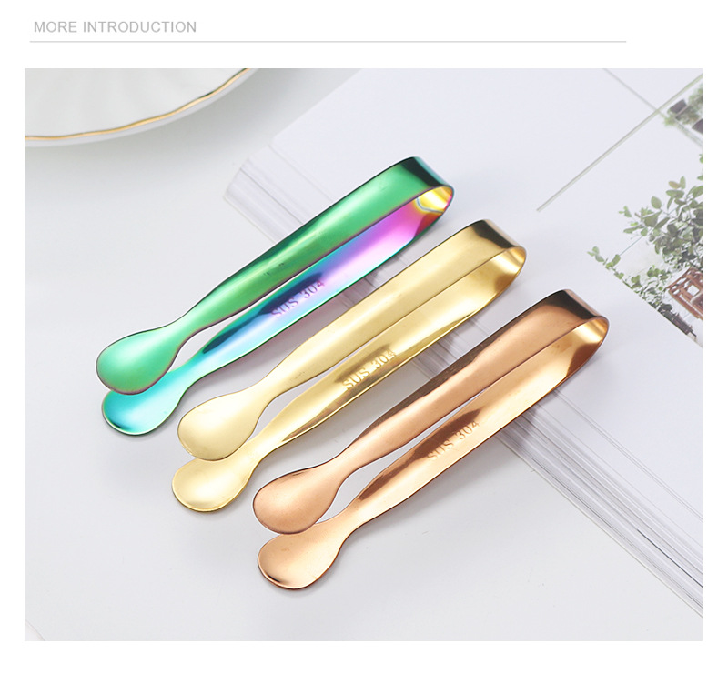 304不锈钢圆头冰夹餐厅厨房酒吧多用食品夹方糖夹冰粒夹镀钛冰夹