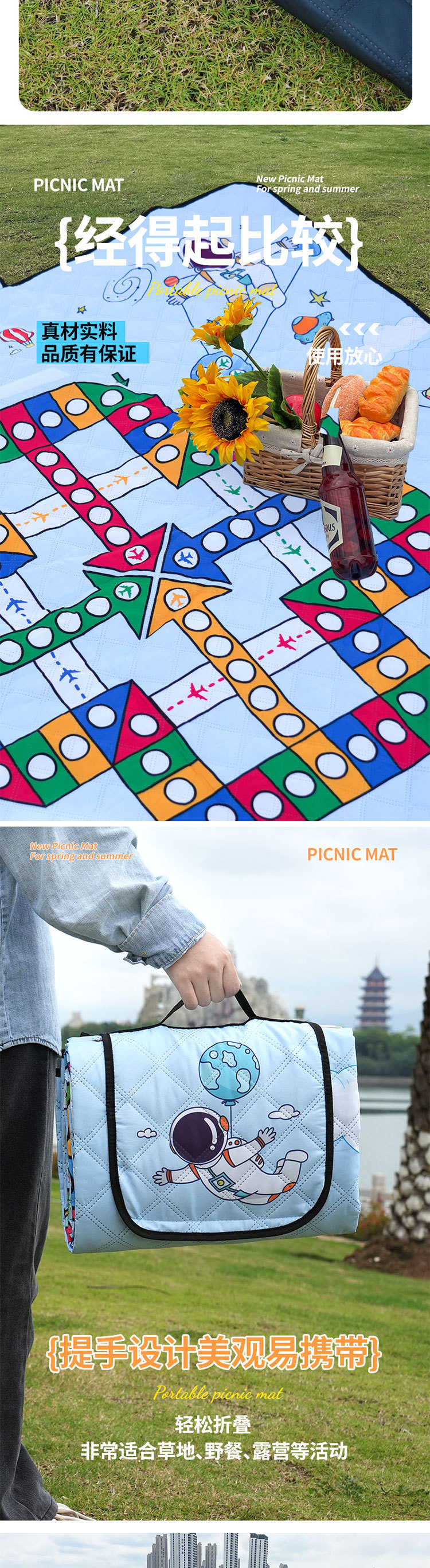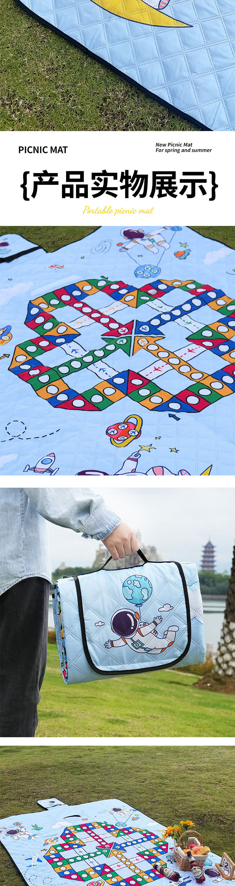 飞行棋野餐垫超声波游戏垫加厚野营地垫便携沙滩露营垫防水防潮垫