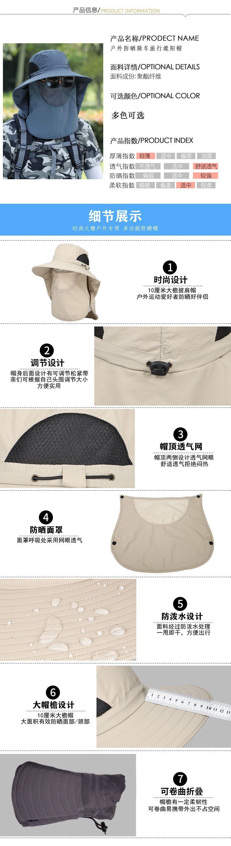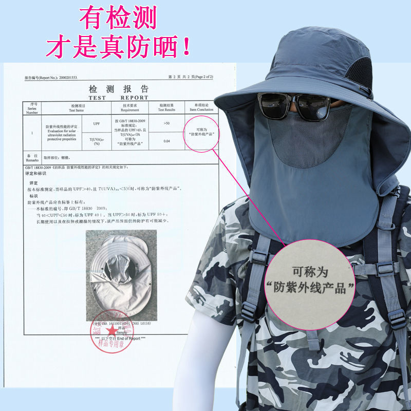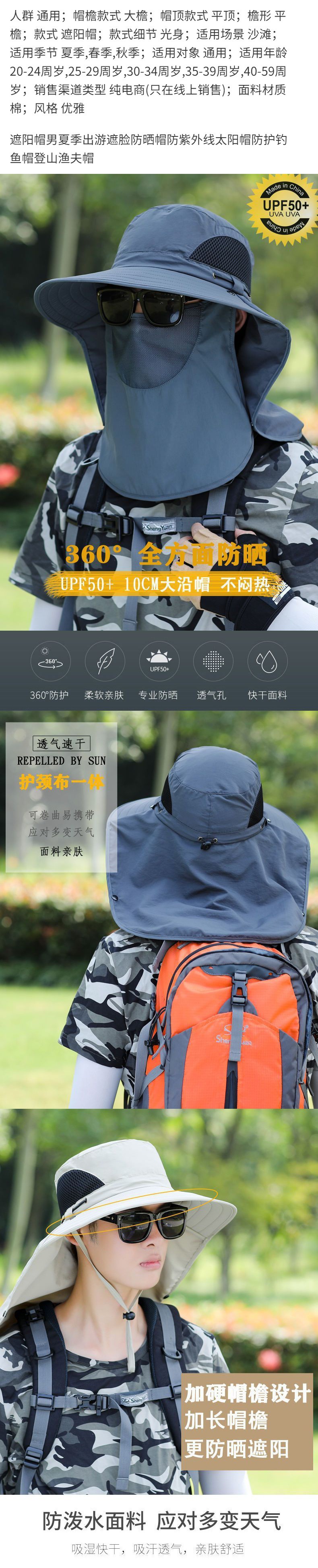 遮阳帽男款男钓鱼帽防紫外线太阳帽防嗮防水帽夏季出游遮脸护颈帽