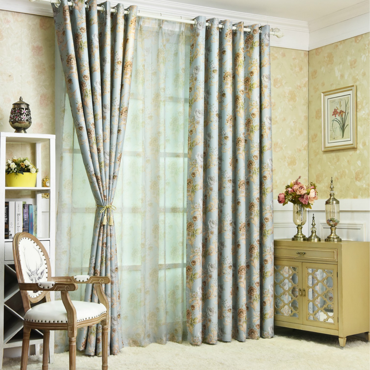 遮阳遮光窗帘布欧式碎花窗帘简约现代客厅卧室落地飘窗帘成品隔热