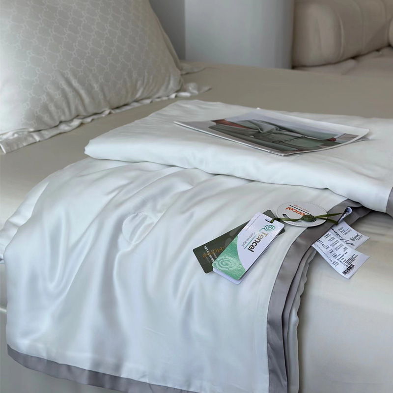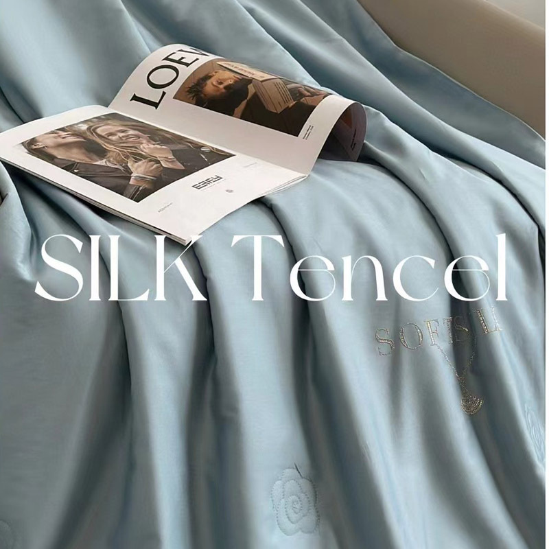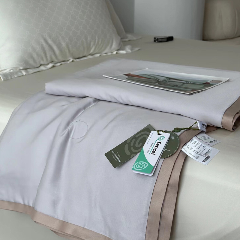 包邮 纯色莱赛尔凉感裸睡天丝蚕丝大豆纤维夏被烫钻空调被