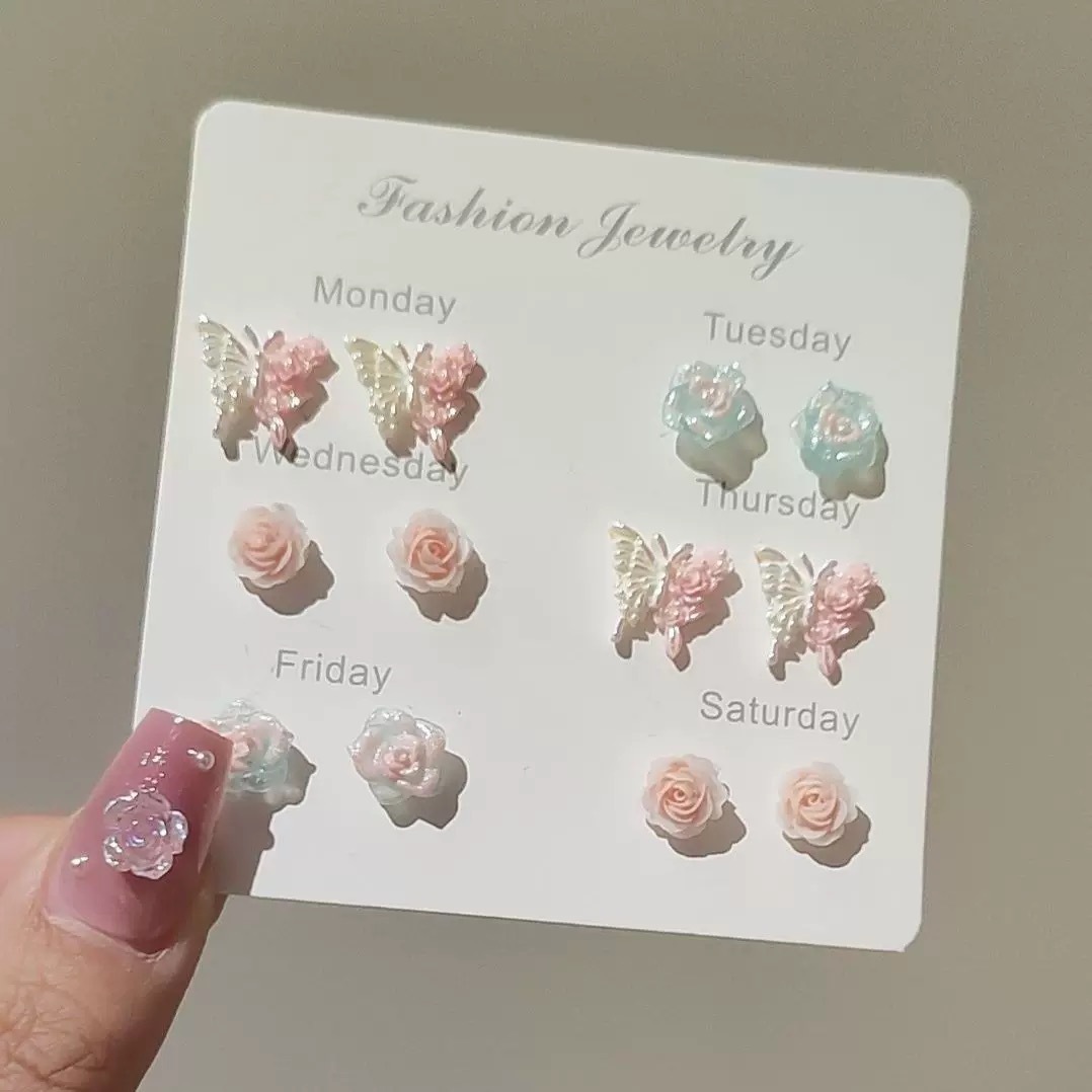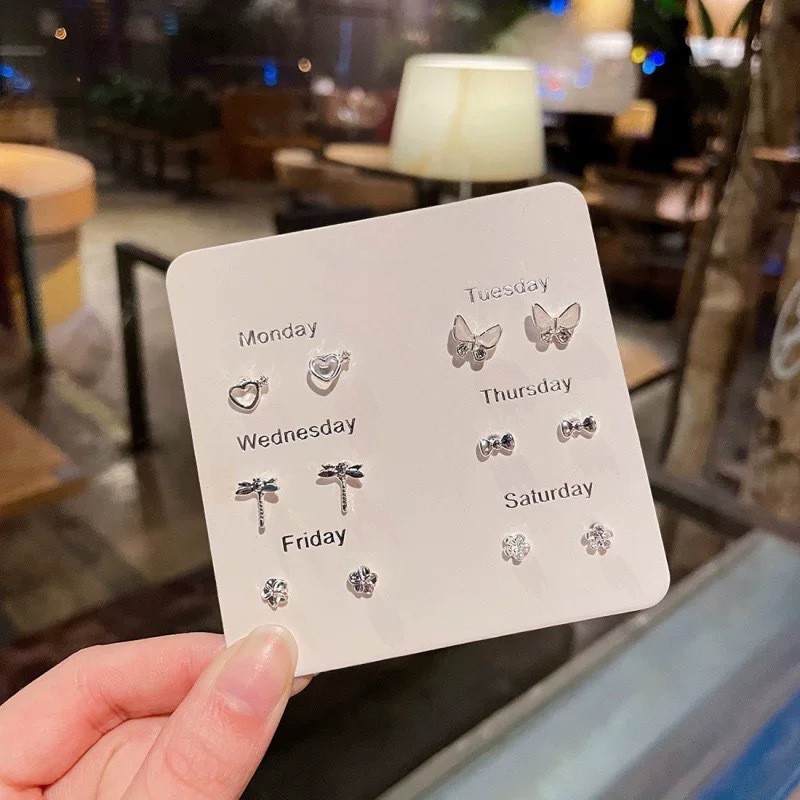 925银学生星期耳钉女小众简约设计感高级耳环2024年新款潮ins风耳