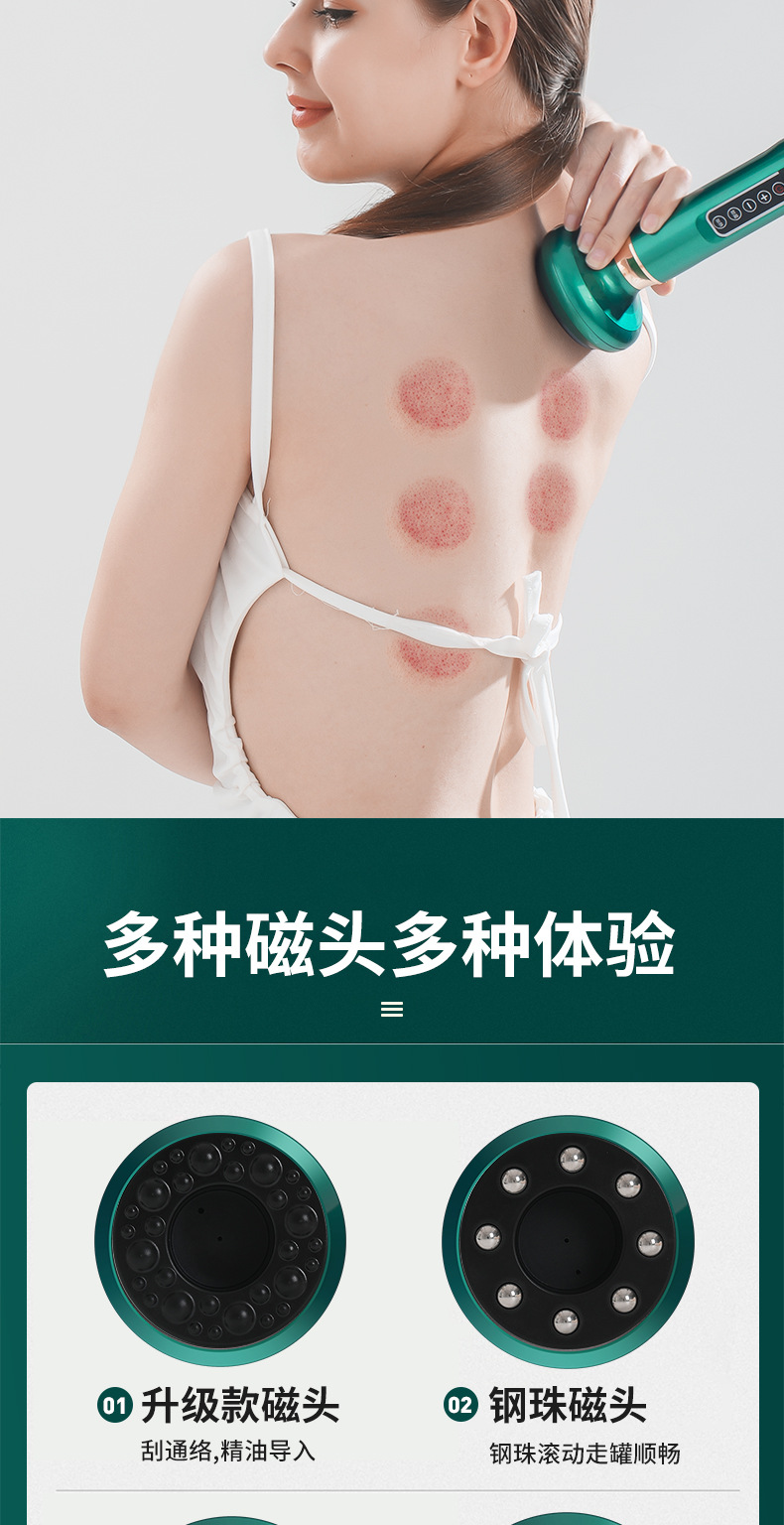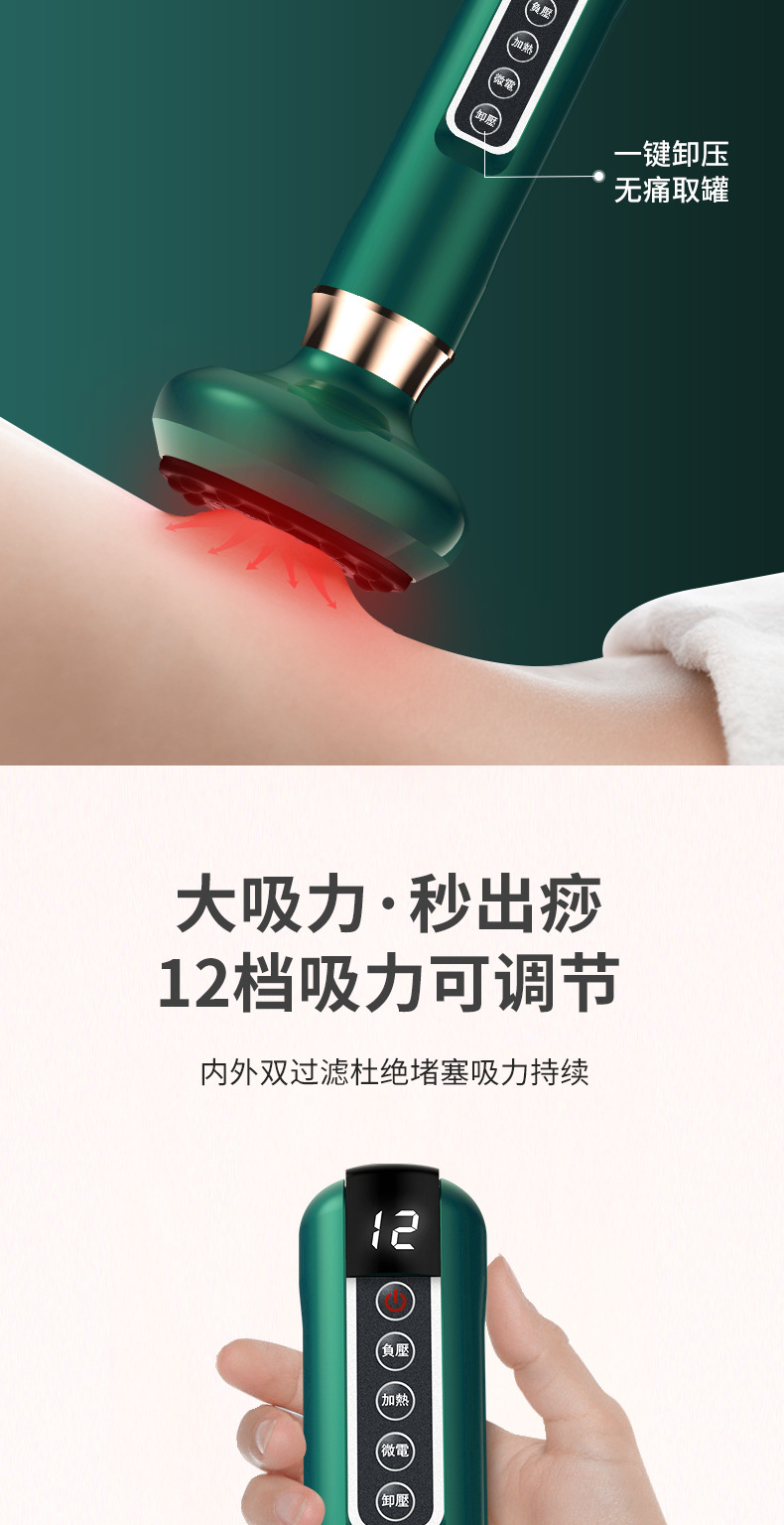 跨境刮痧拔罐器家用电动砭石负压红光吸痧按摩全身负压拔罐按摩仪