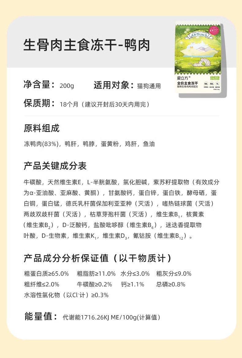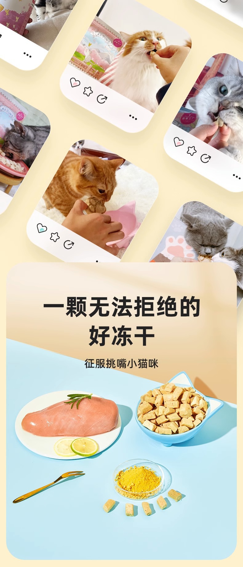 爱立方冻干猫粮 主食生骨肉 猫零食鸡肉鹌鹑鱼肉 增肥发腮猫