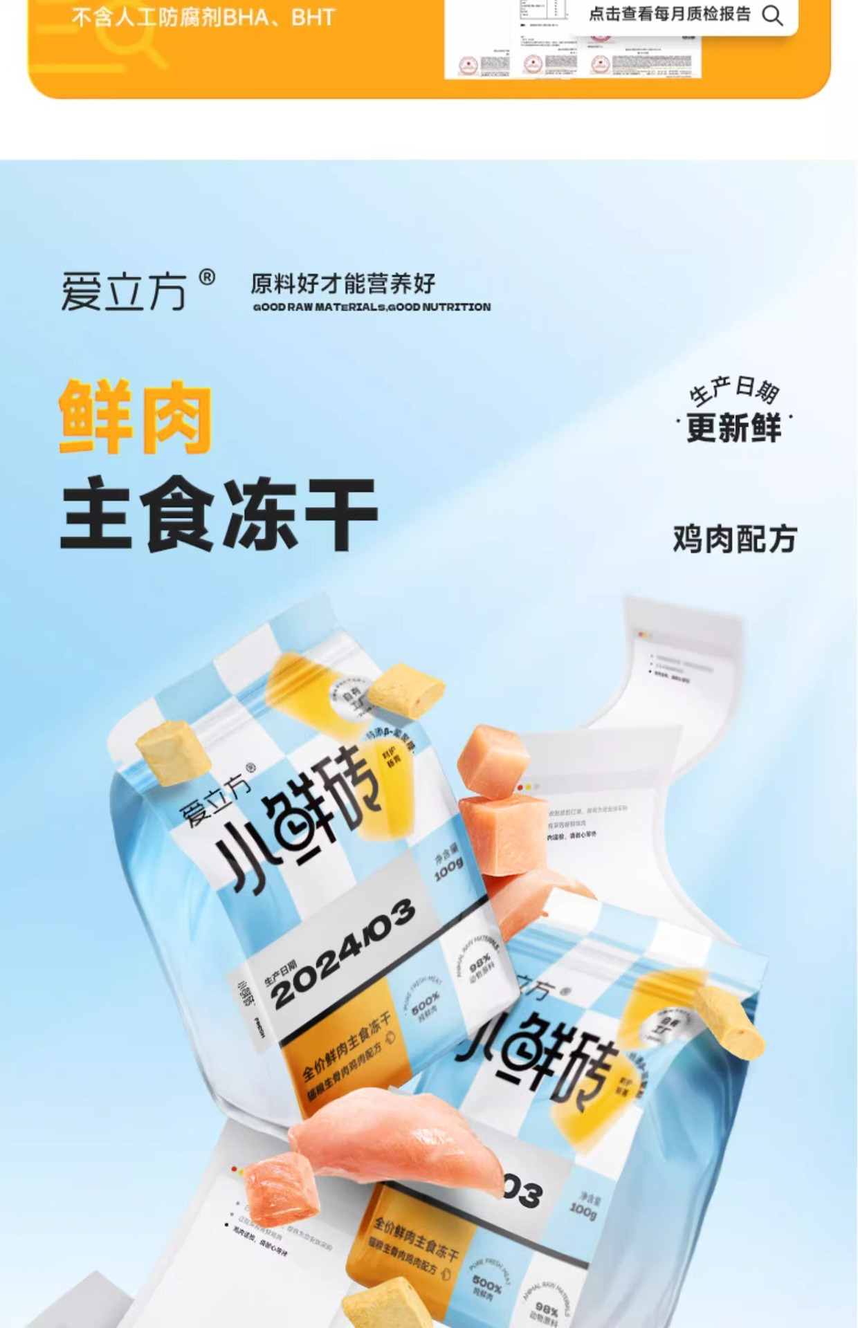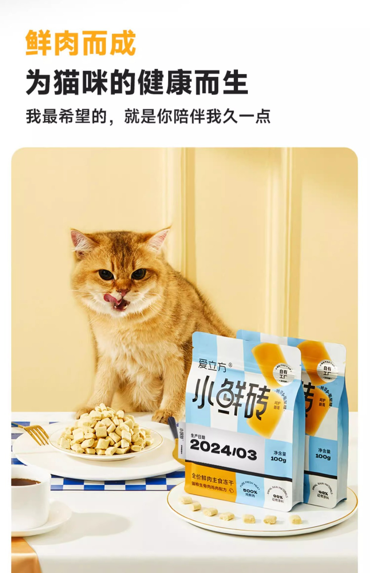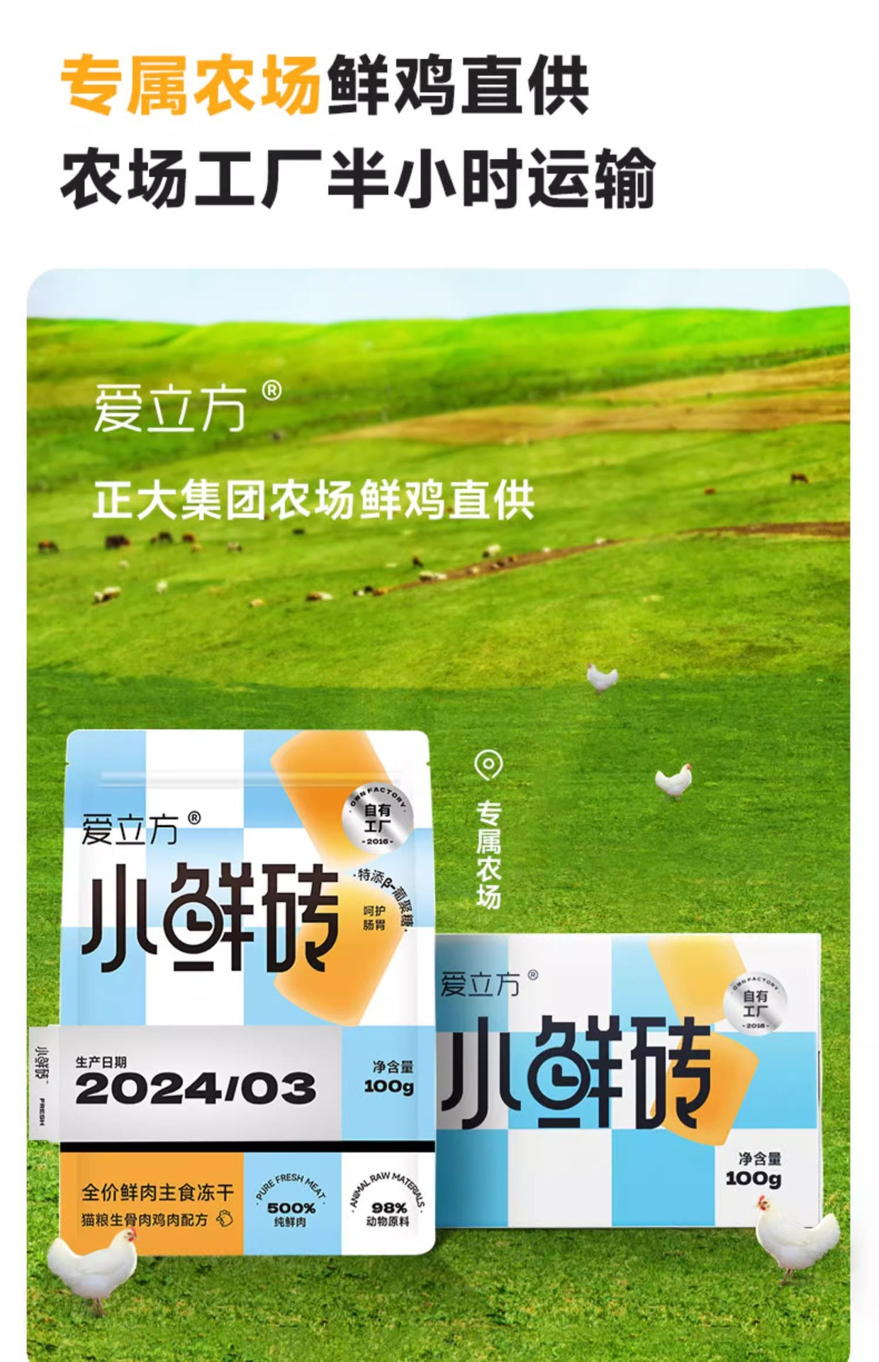 爱立方小鲜砖发腮生骨肉主食猫咪零食成幼猫鸡肉冻干主食鲜肉300g