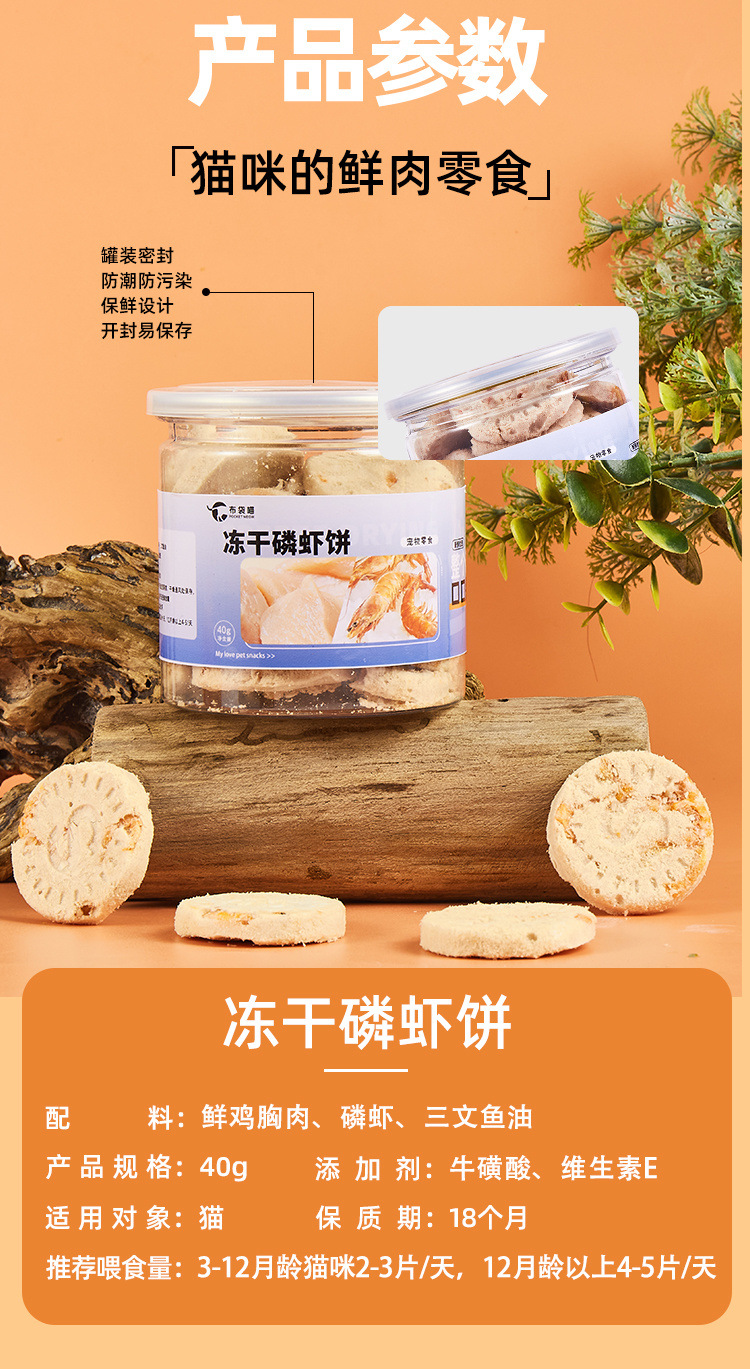 猫咪零食布袋喵宠物冻干鸡肉磷虾饼成幼猫鱼油营养品磨牙增肥长胖