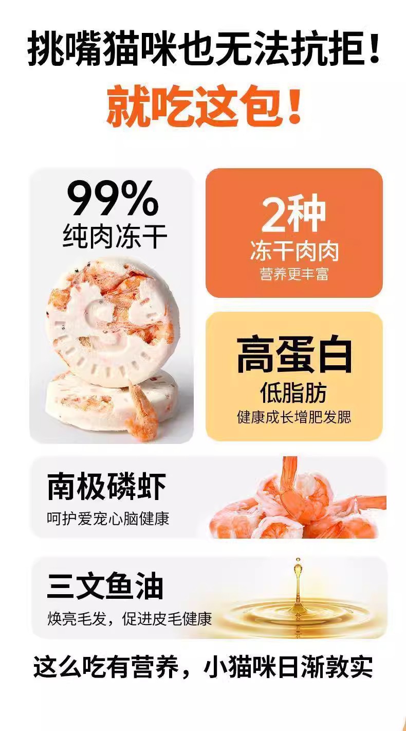 冻干鸡肉磷虾饼猫咪零食成幼猫补钙营养发腮饼美毛护肤狗宠物增肥