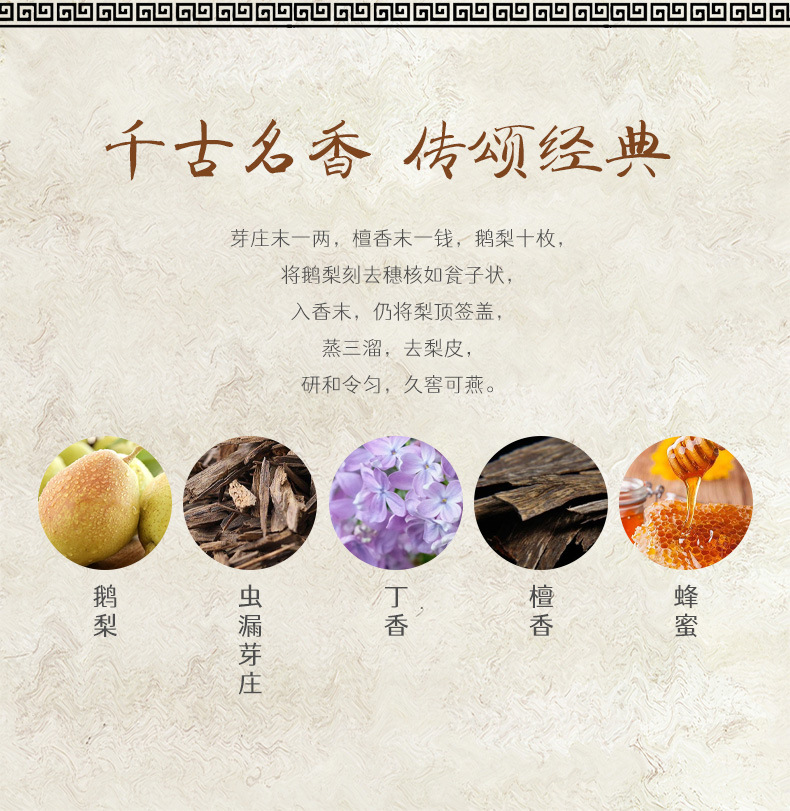 | incense made of pear juice and tambac 20g/about 45 pcs + lotus censer(鹅梨帐中香20克/约45支+莲花香盘) | USD $1.56 | 3541 box available |
