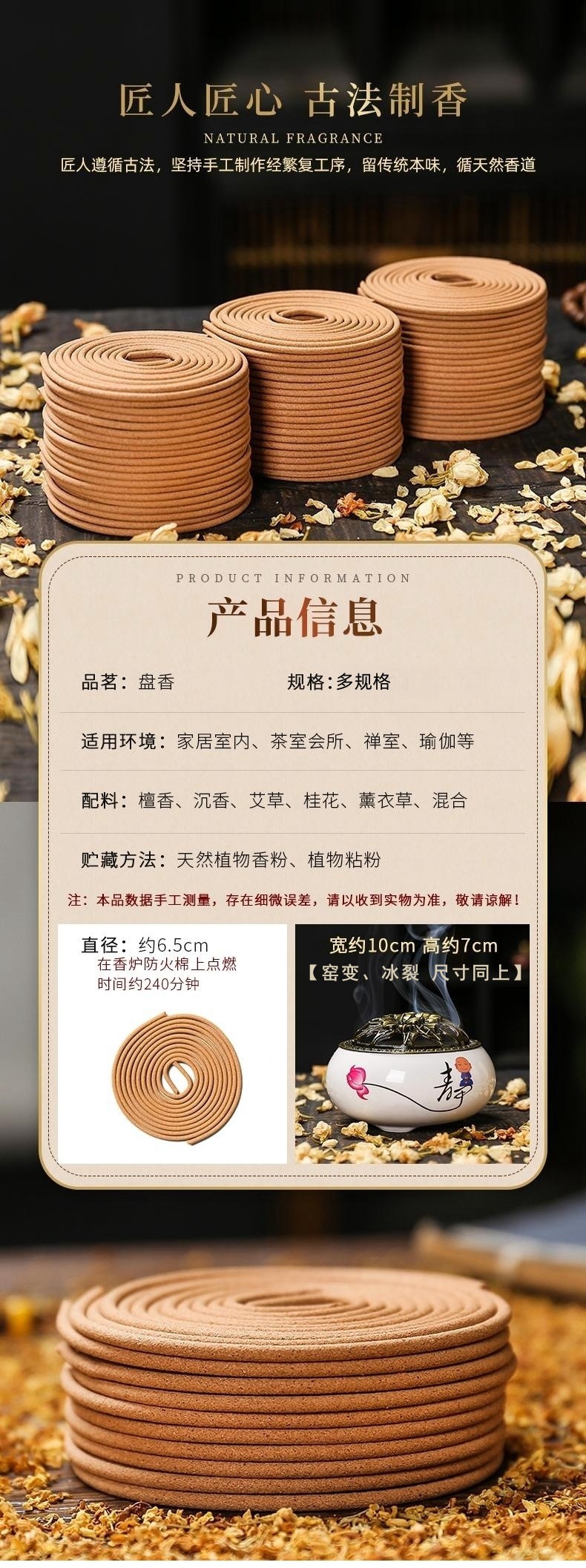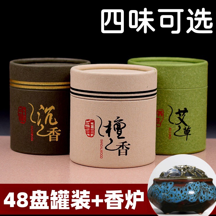 120盘96盘香檀香艾草沉香薰家用室内熏香厕所除臭去味驱蚊40 48盘