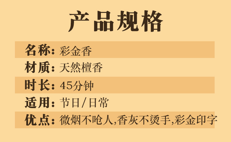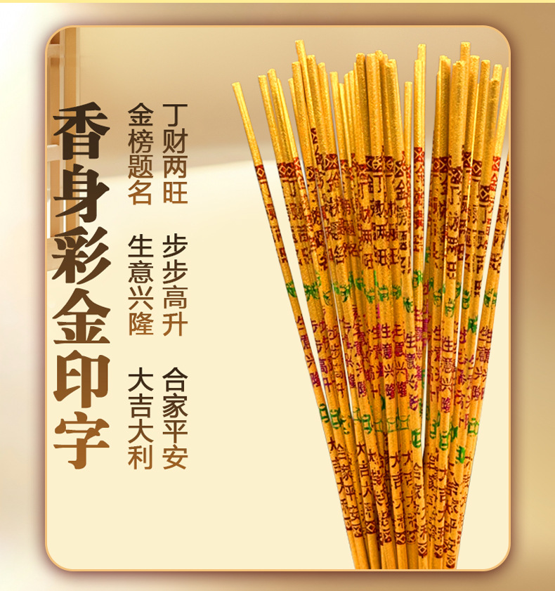 天然檀香彩金印字45分钟合家平安供香寺庙道家仙家天然线香细香