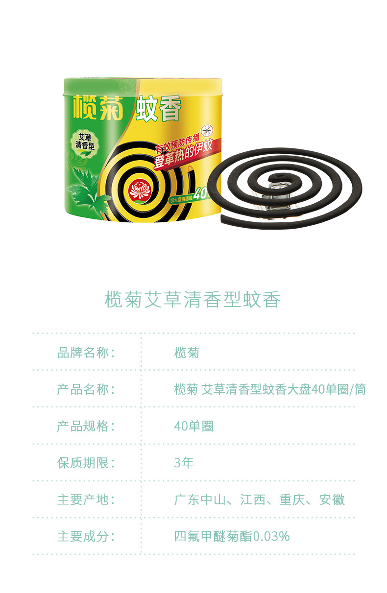 榄菊蚊香 40圈 艾草清香型30加大型桶装盘式驱蚊香黑蚊香批发团购