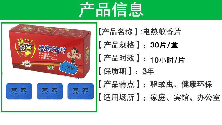 亮客盒装蚊香片30片装新款清香型电热蚊香片家用灭蚊片长效驱蚊片