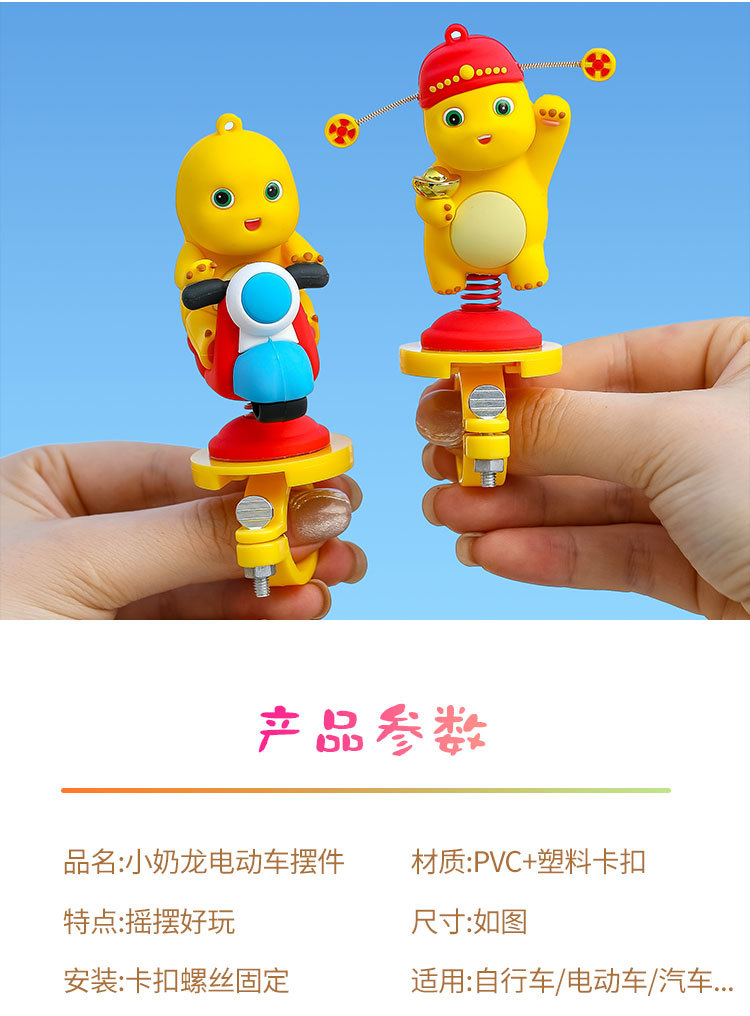 2025新款正版奶龙电动车摆件摇摇乐卡通公仔夏季骑行自行车装饰品
