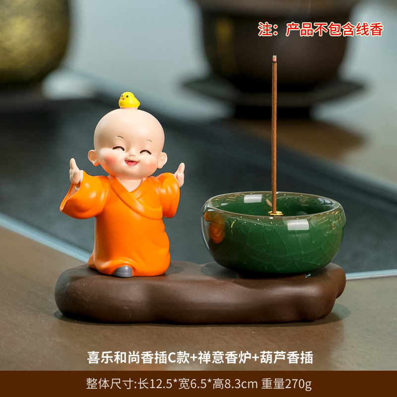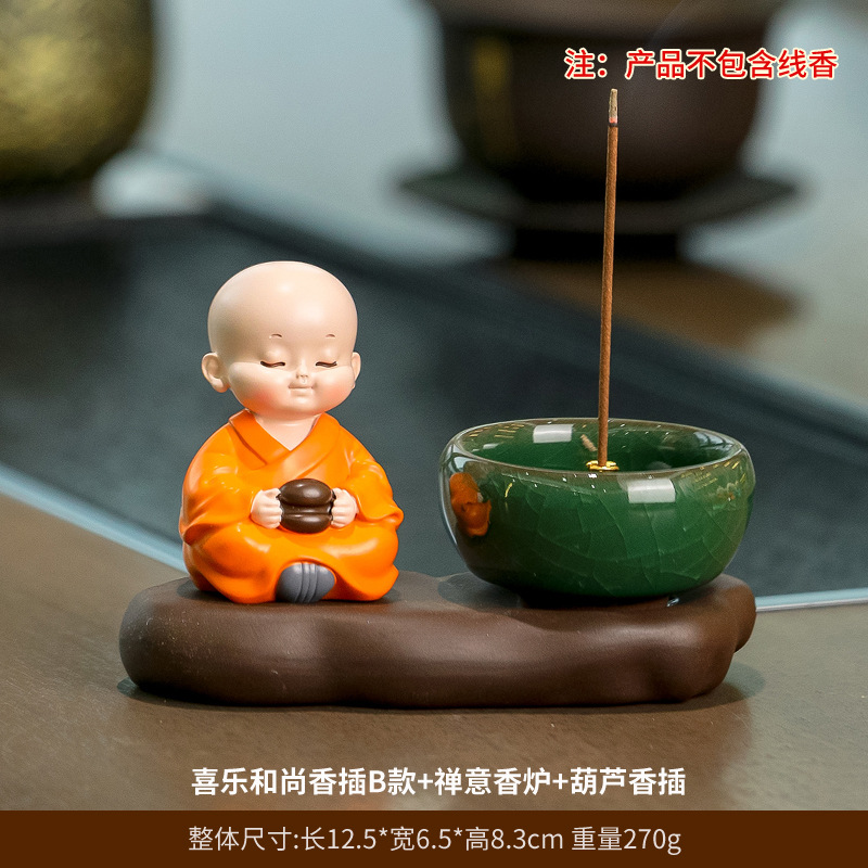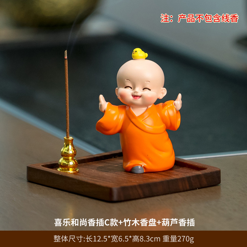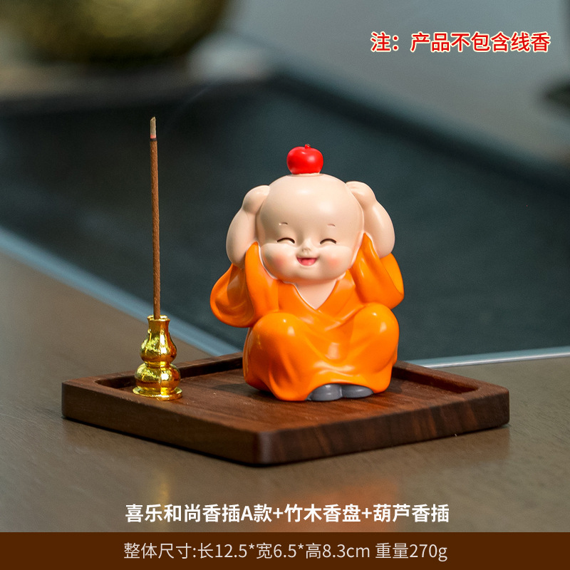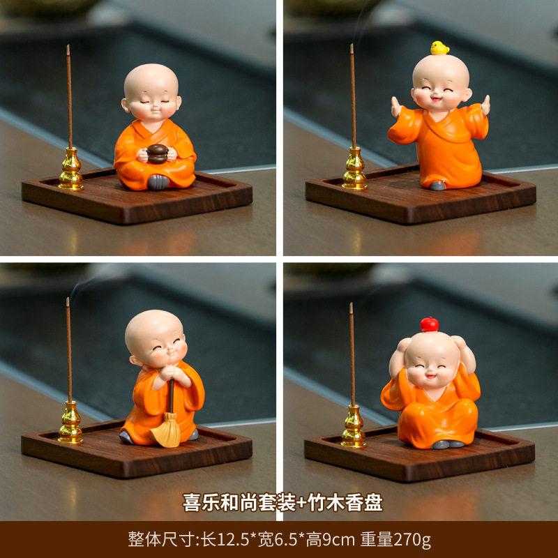 摆件2025新款高级感办公桌面装饰小摆件喜乐和尚茶桌摆设树脂公仔
