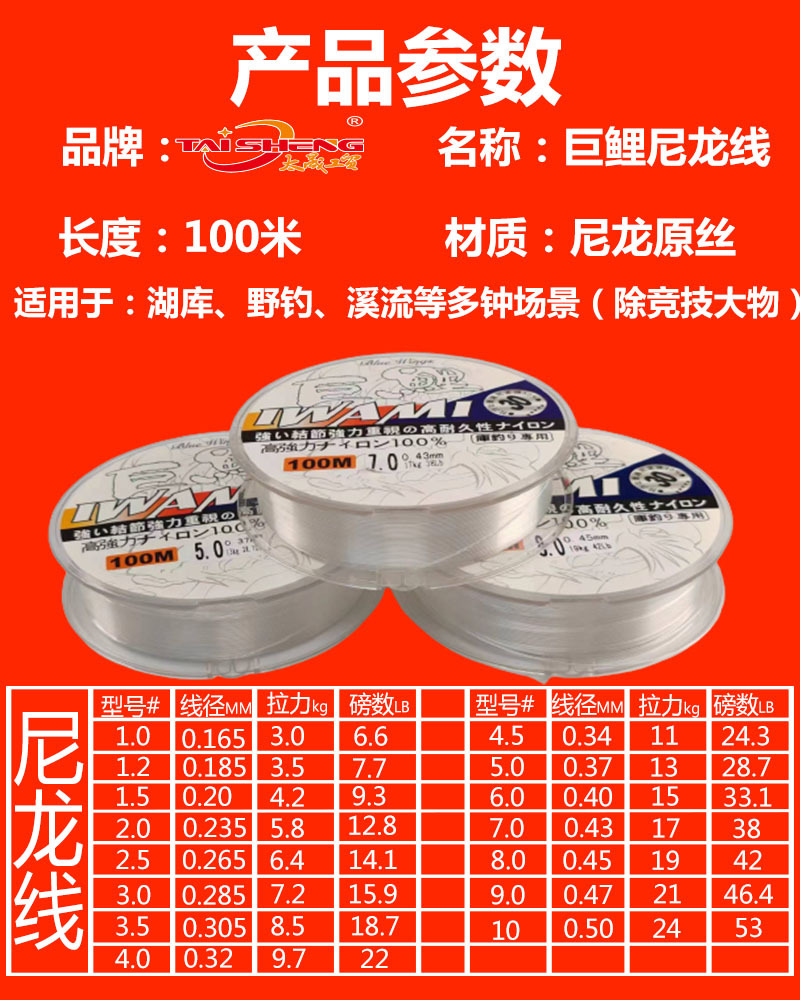 现货100米尼龙鱼线库钓专用线定制款渔网线野钓休闲渔线批发