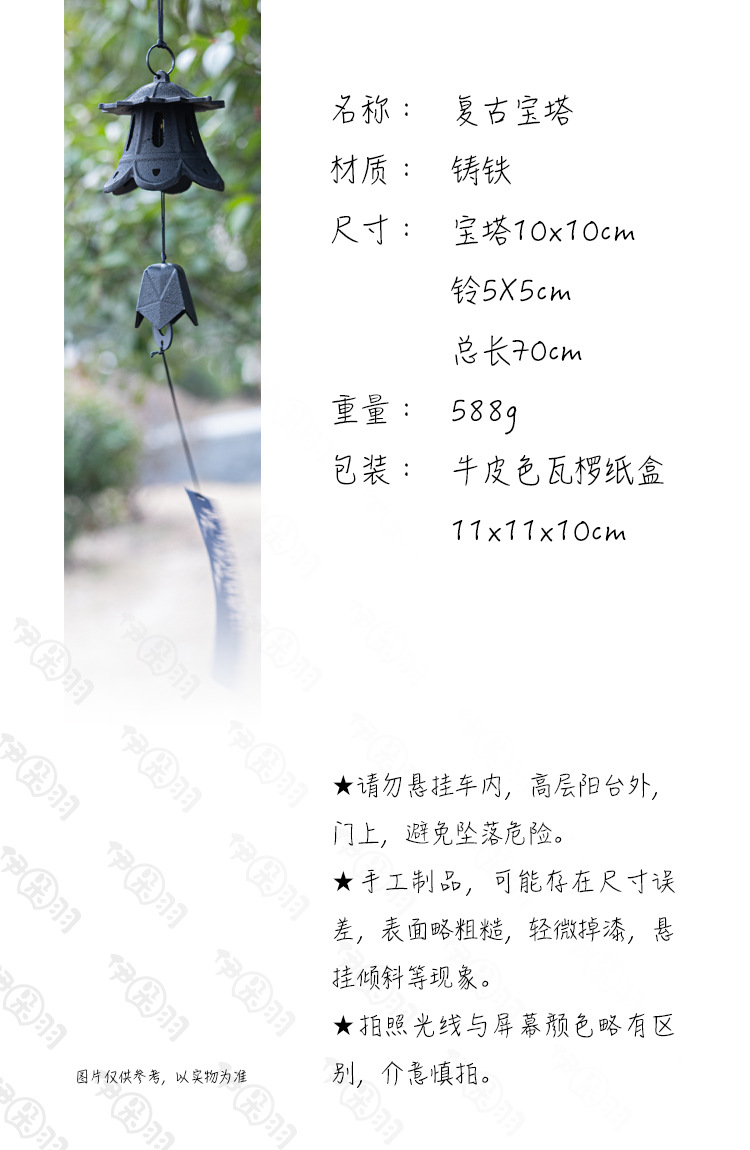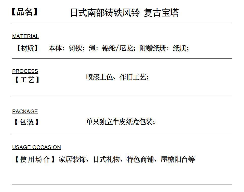 工厂批发岩手日式南部铸铁复古宝塔风铃庭院和风挂饰