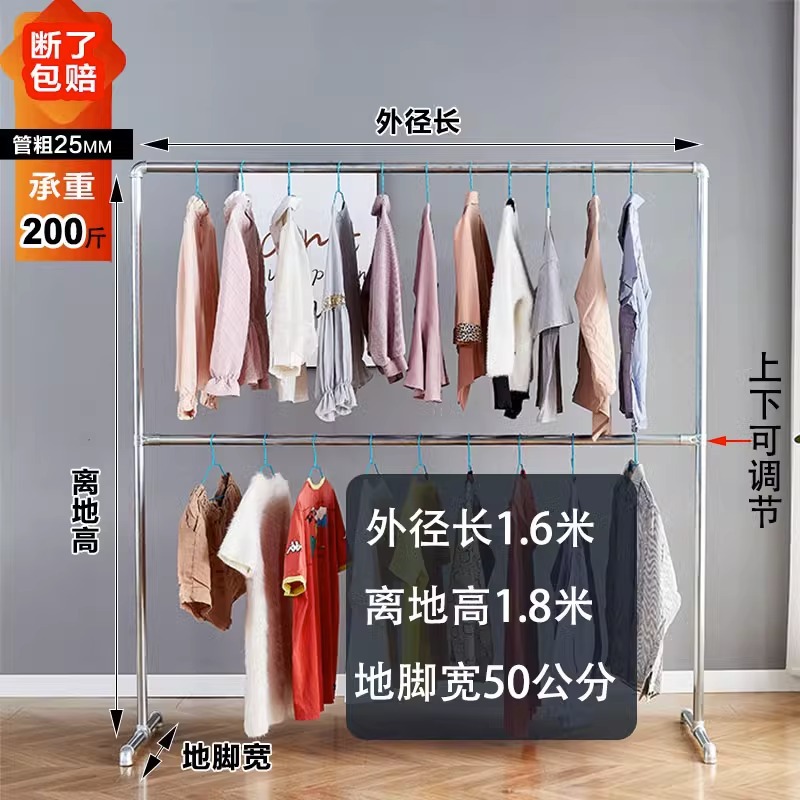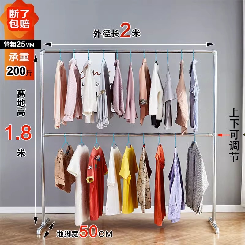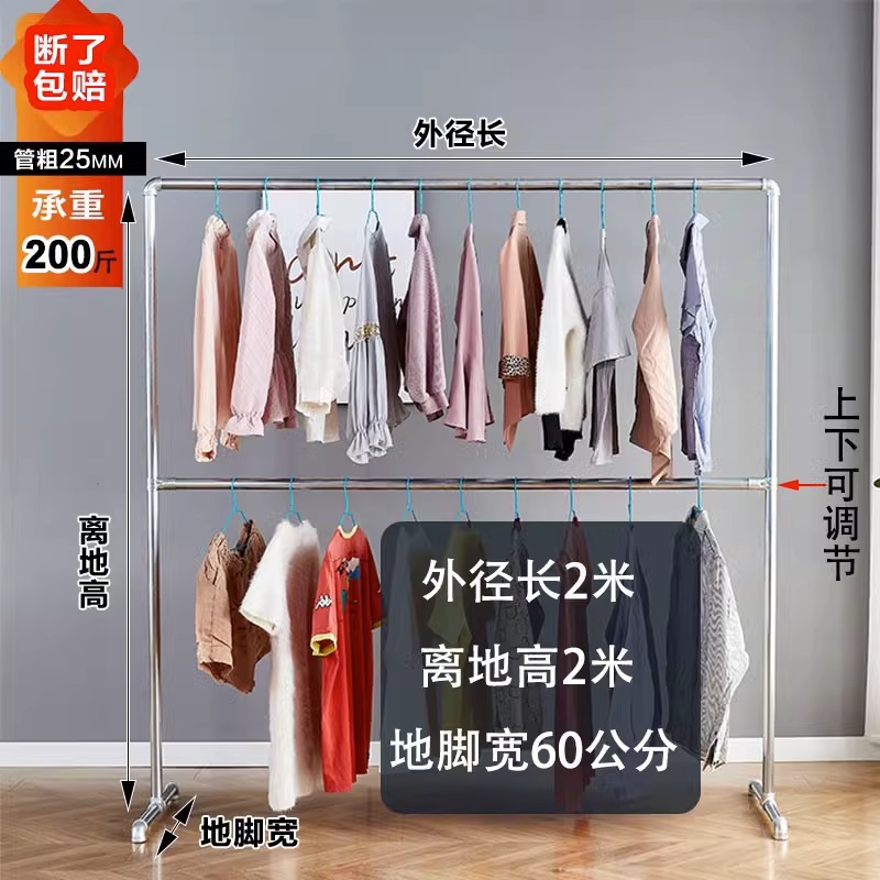 钢管晾衣架挂衣架凉衣架落地家用阳台双层双杆镀锌水暖管卧室