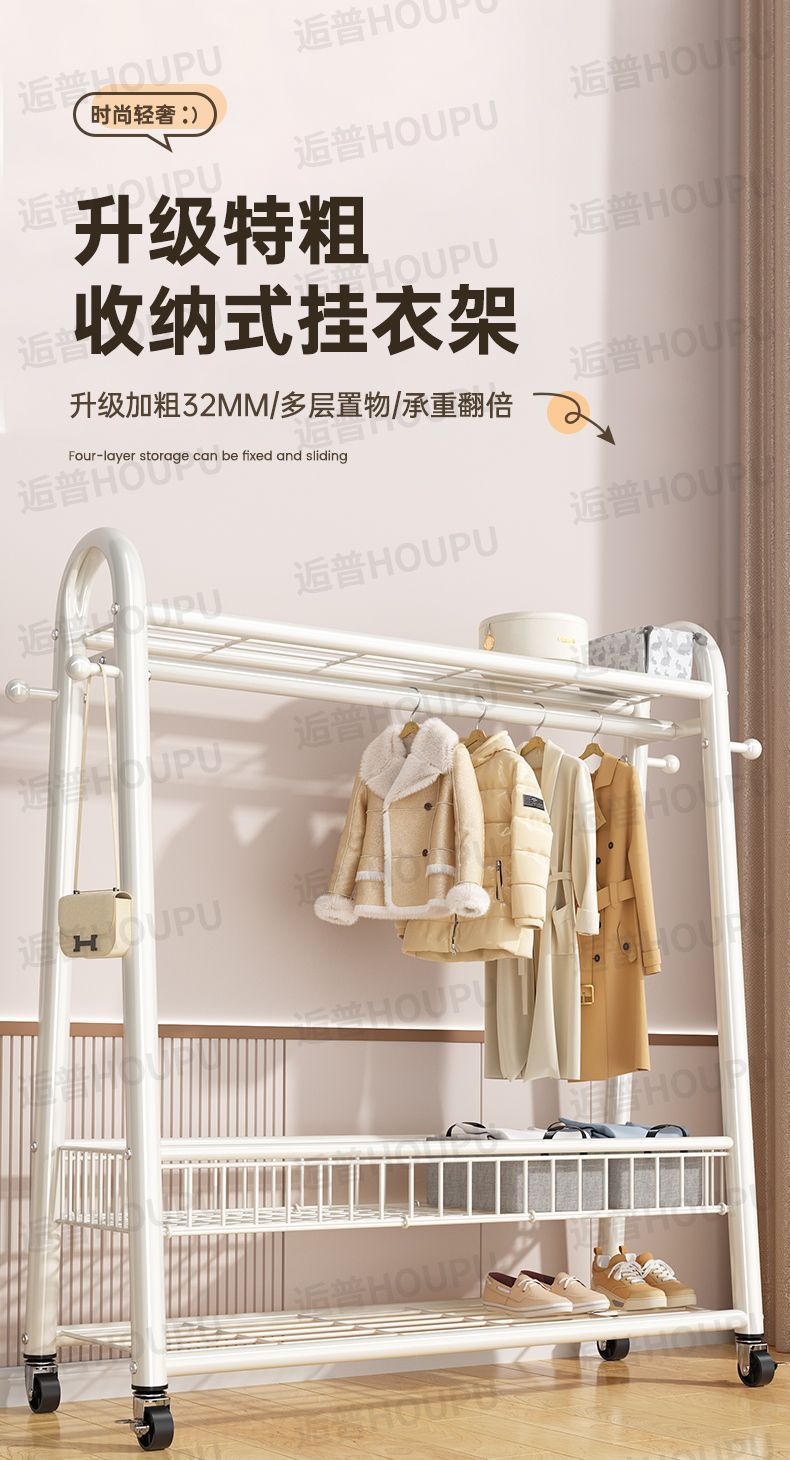 【特粗32管】晾衣架落地立式加粗挂衣架阳台凉衣杆室内简易衣帽架