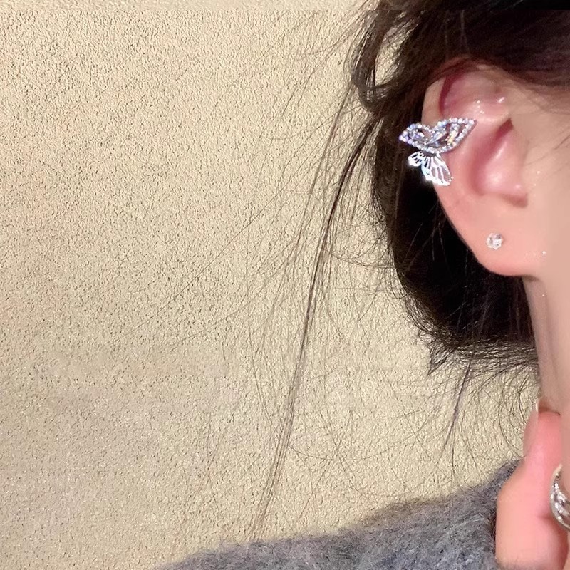 立显精灵耳轻奢小众闪闪锆石蝴蝶耳夹气质高级感百搭耳骨夹耳饰