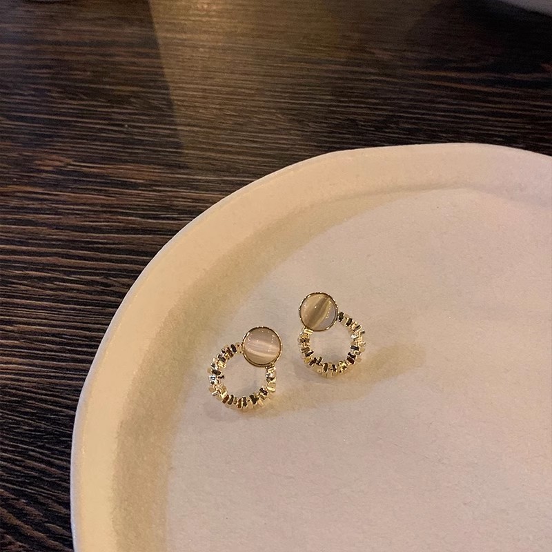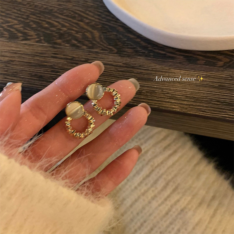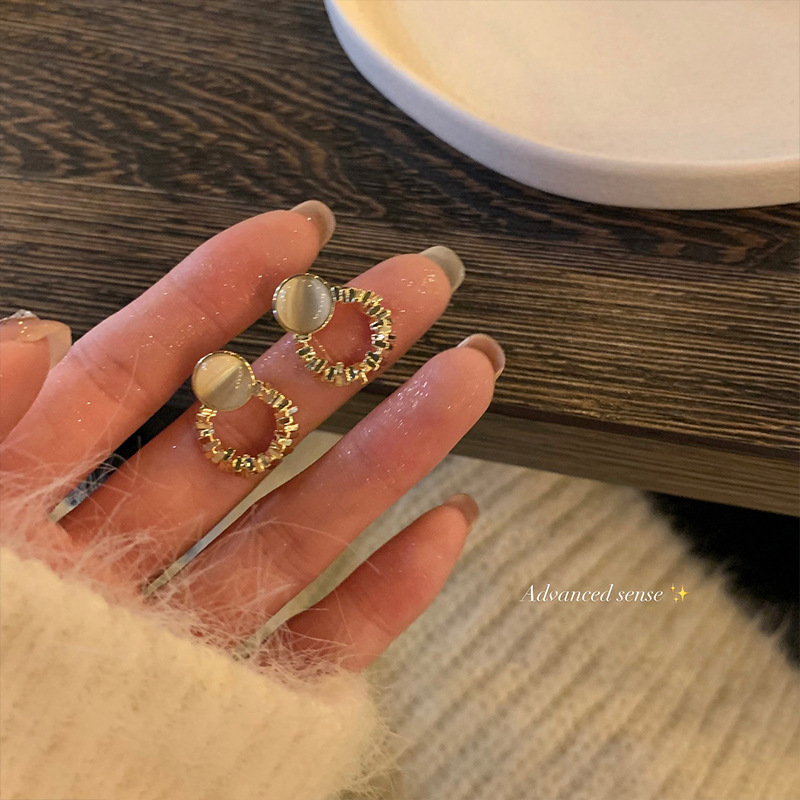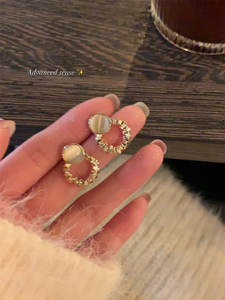 清透感爆闪猫眼石碎银子几何耳环高级感绝美气质独特耳饰女耳钉