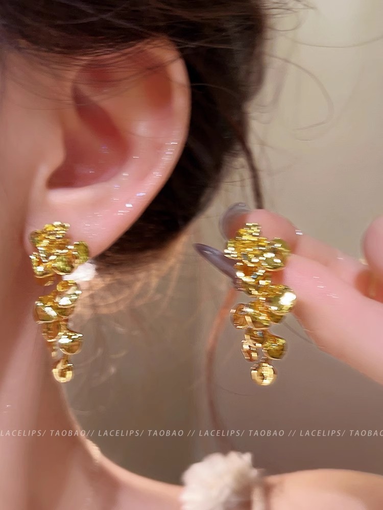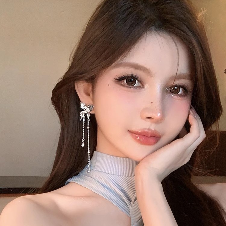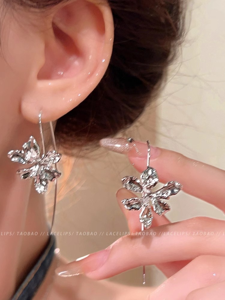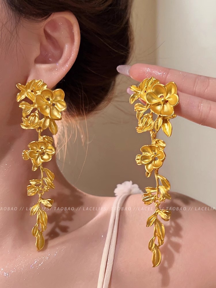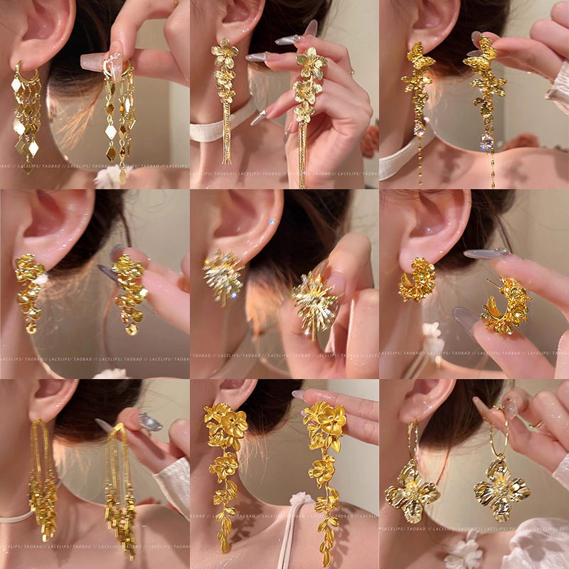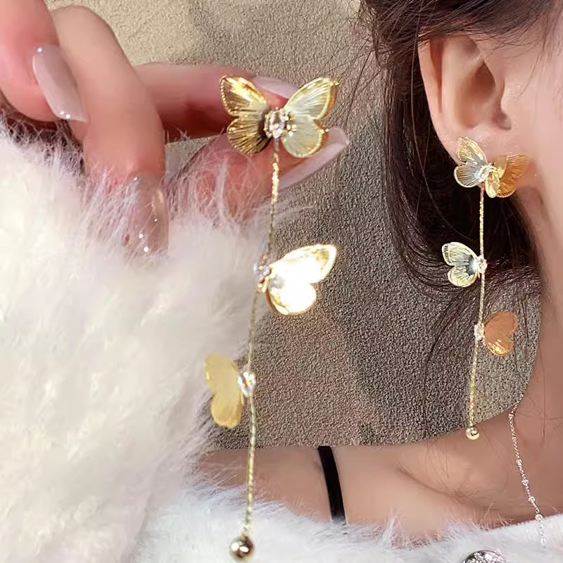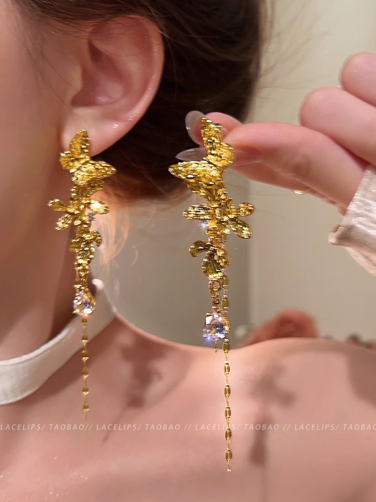 925银针金色蝴蝶花朵耳环轻奢高级感小众流苏耳钉女新款爆款耳饰