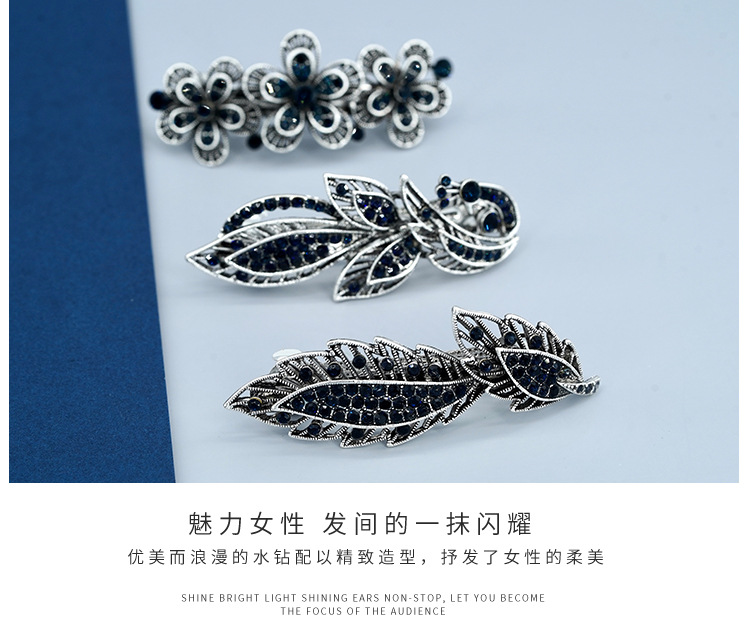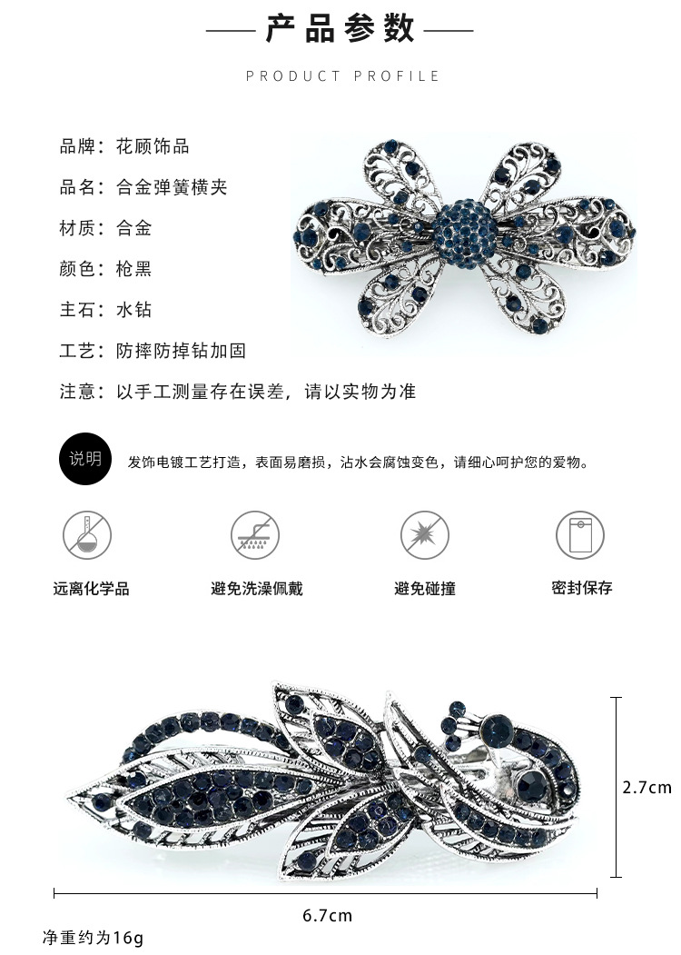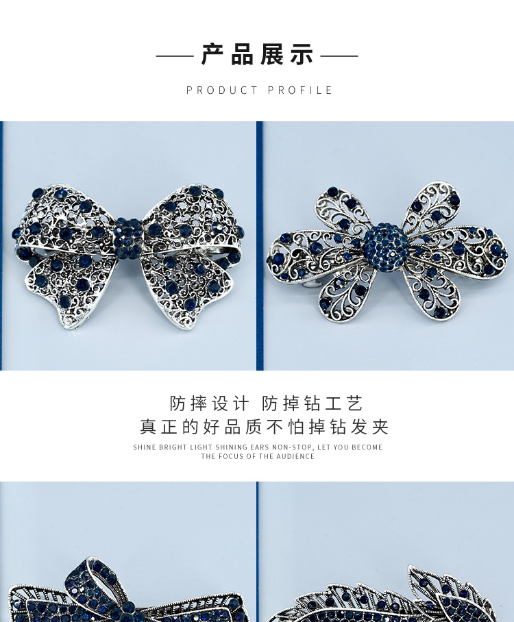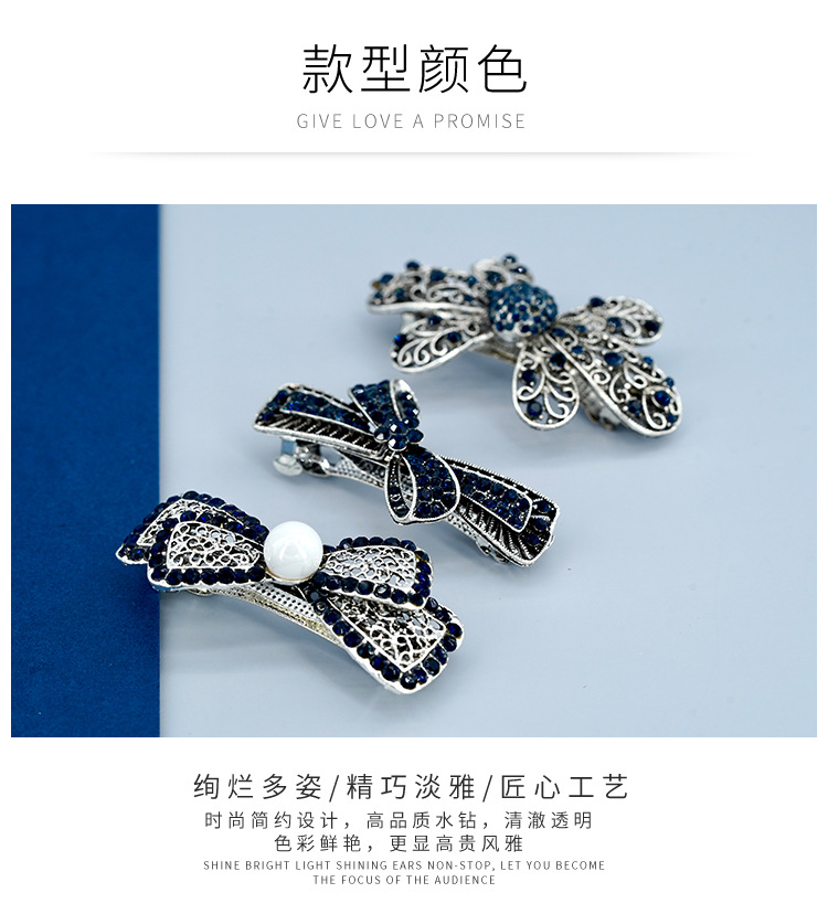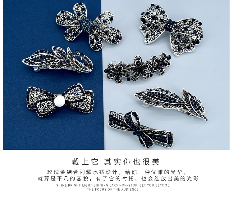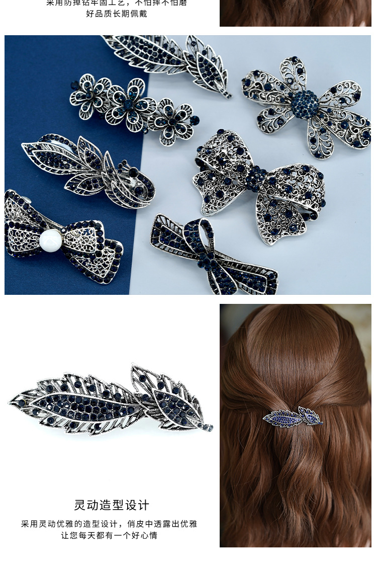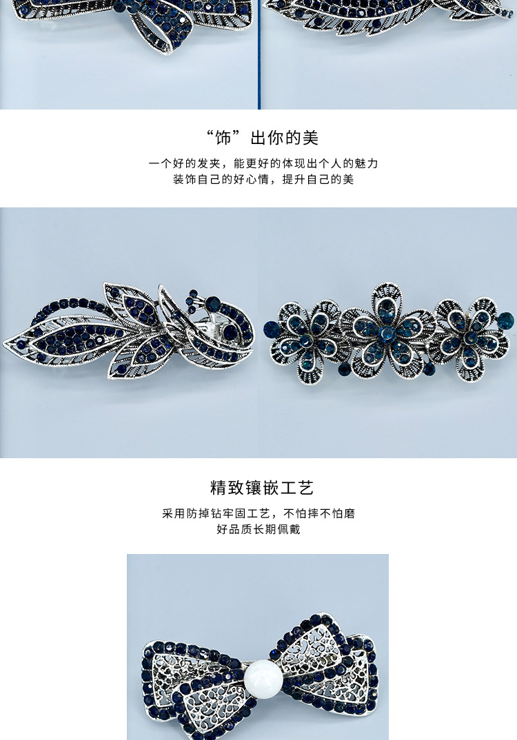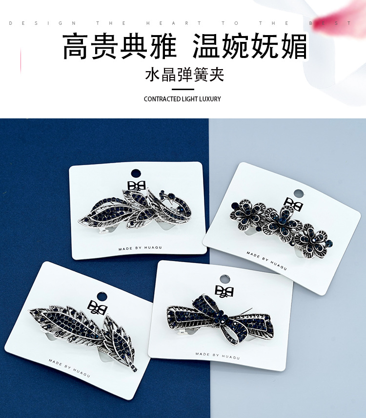 小香风弹簧夹韩版头饰少女发饰合金顶夹马尾水钻发夹复古发卡