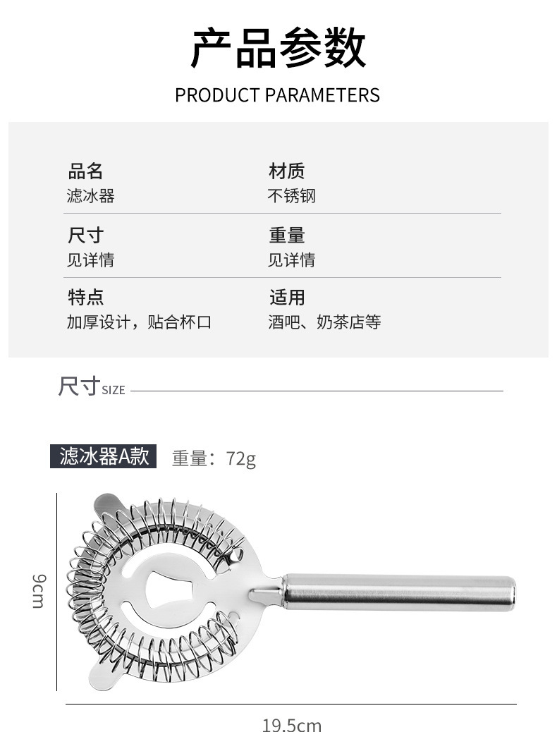 滤冰器隔冰鸡尾酒调酒工具挡冰器厂家批发跨境不锈钢奶茶咖啡过滤