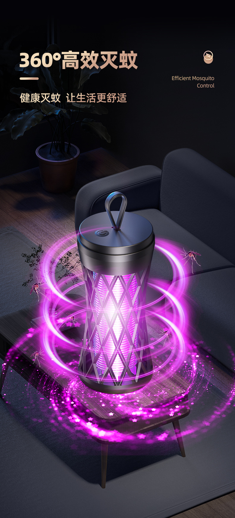 紫光诱蚊电击灭蚊神器室内家用轻音户外驱蚊充电夜灯可手提灭蚊灯
