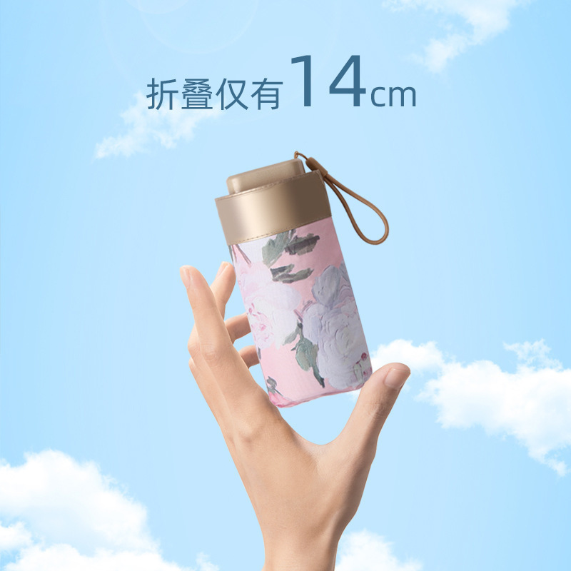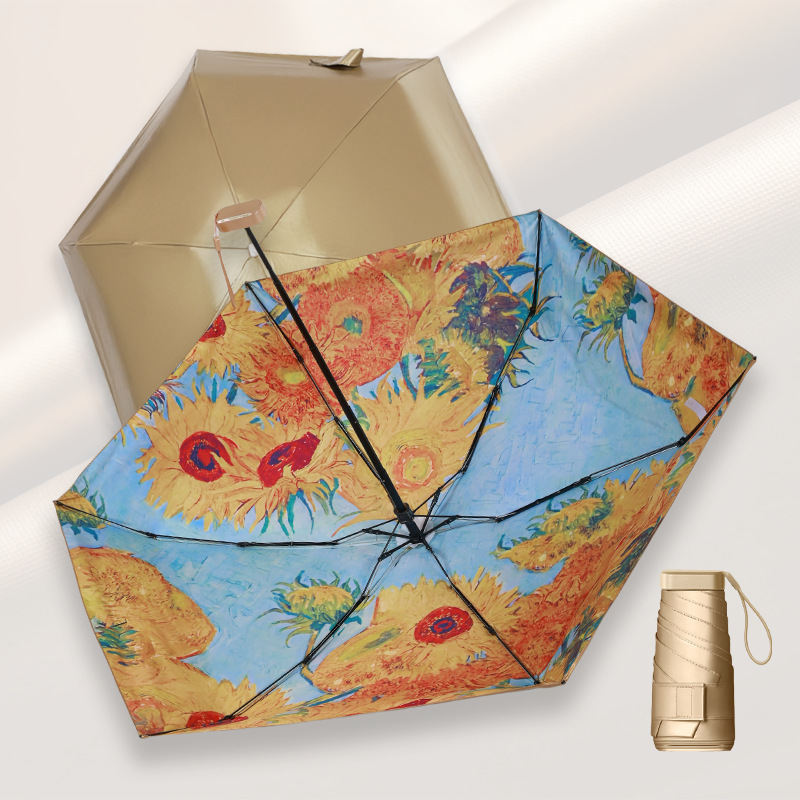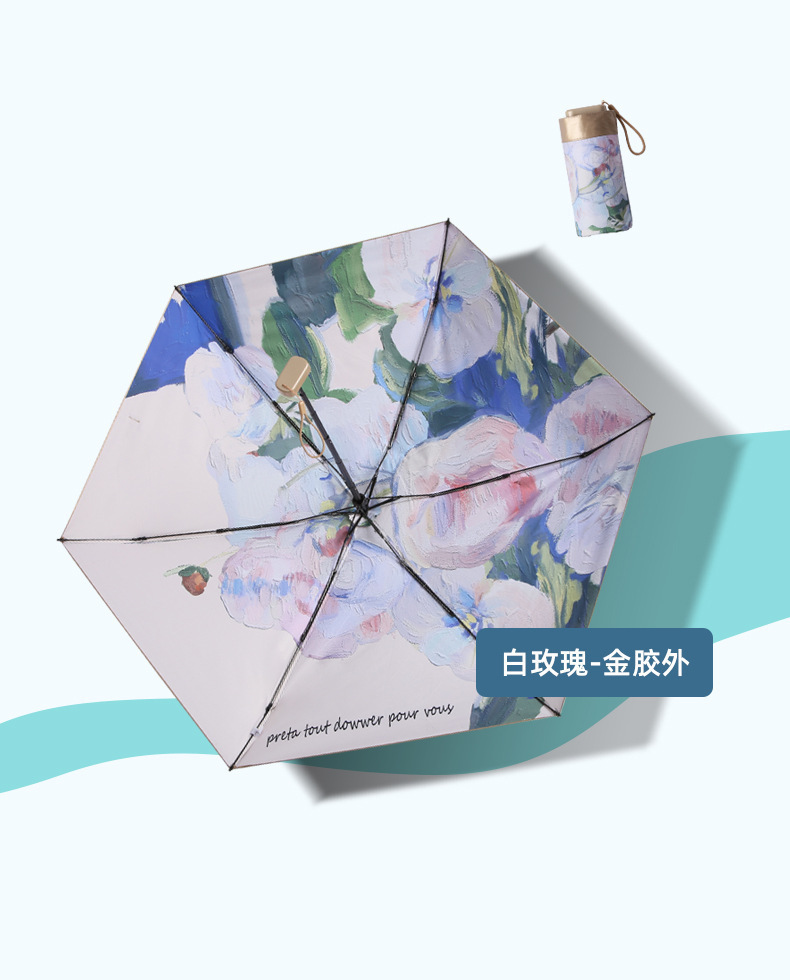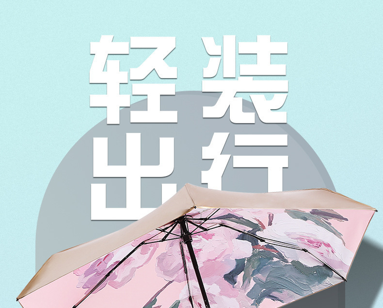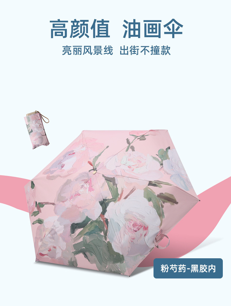 油画超轻扁六折伞防晒防紫外线太阳伞晴雨两用折叠小巧便捷遮阳伞