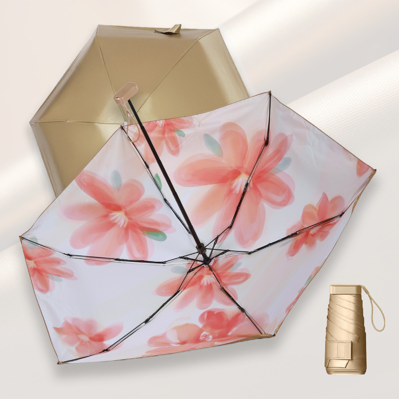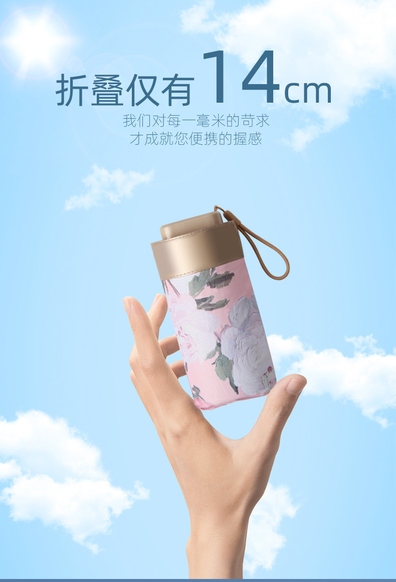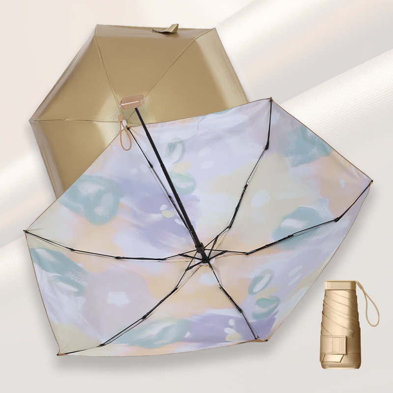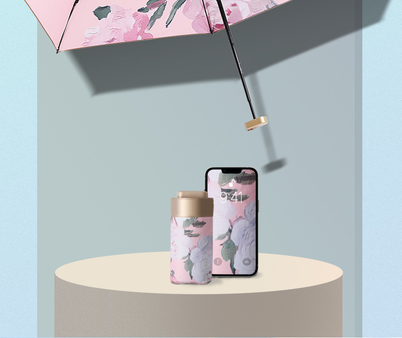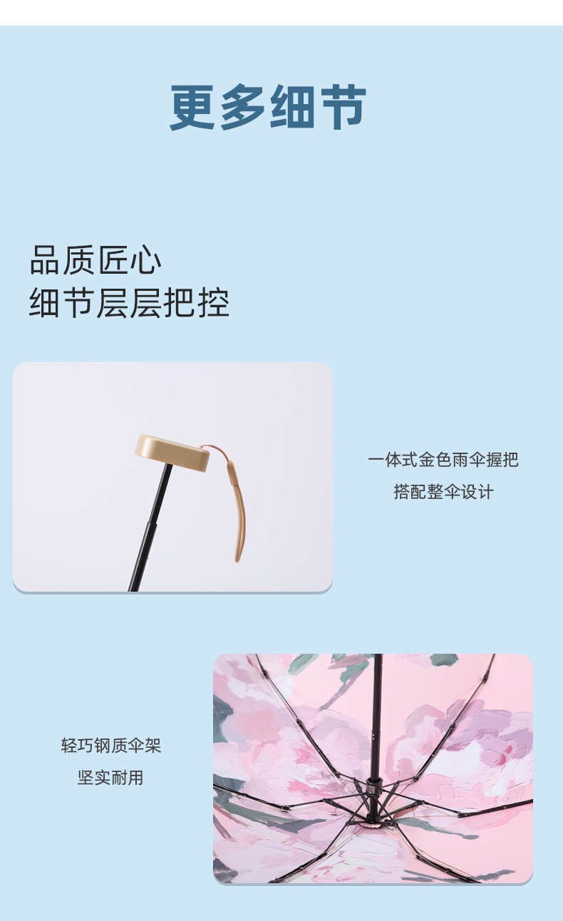 油画超轻扁六折伞防晒防紫外线太阳伞晴雨两用折叠小巧便捷遮阳伞