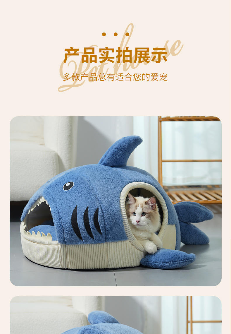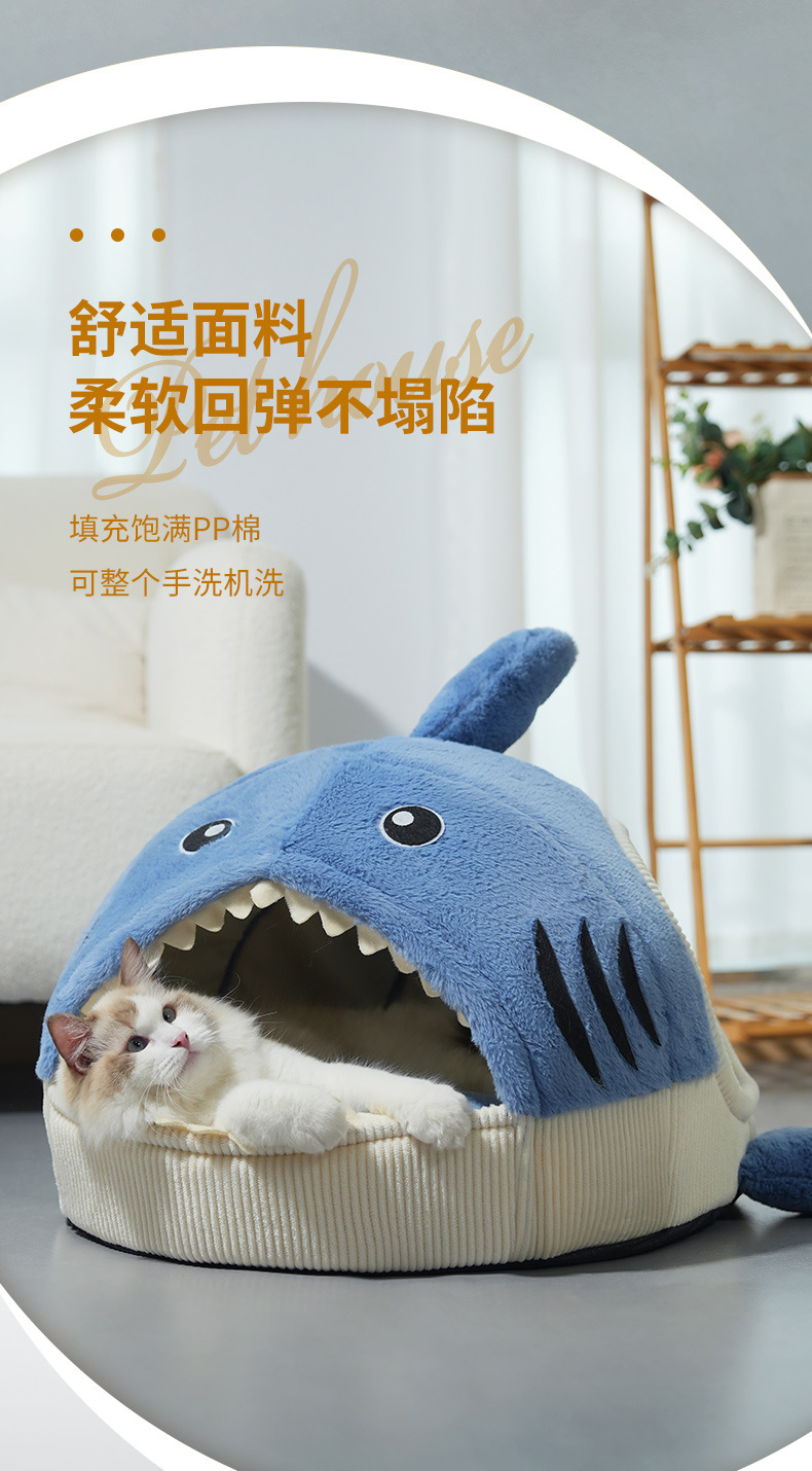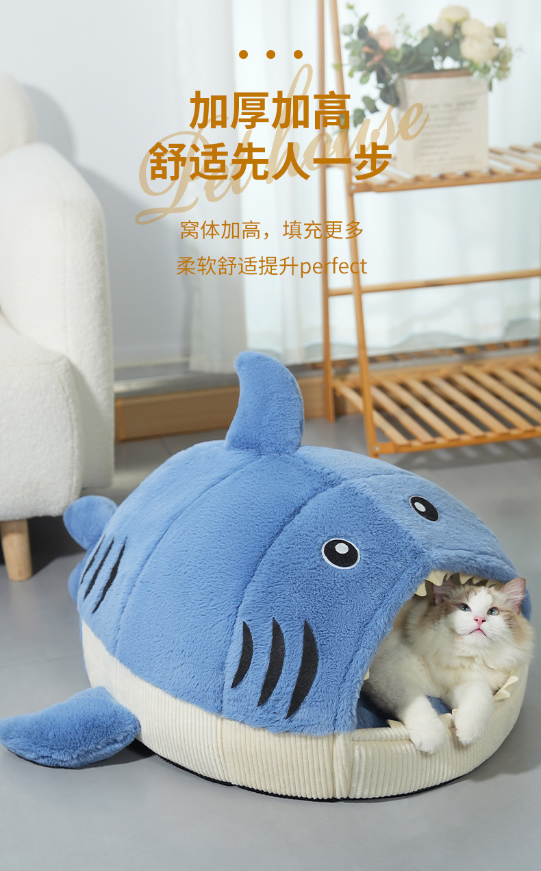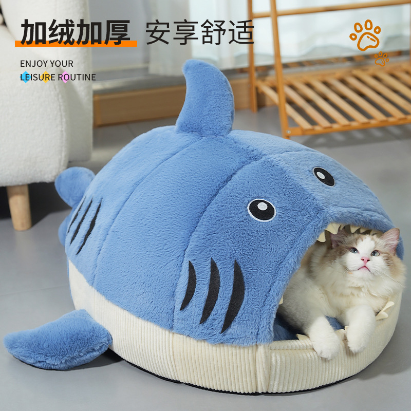 可爱鲨鱼猫窝狗窝毛绒玩具宠物四季通用加厚冬季保暖网红窝