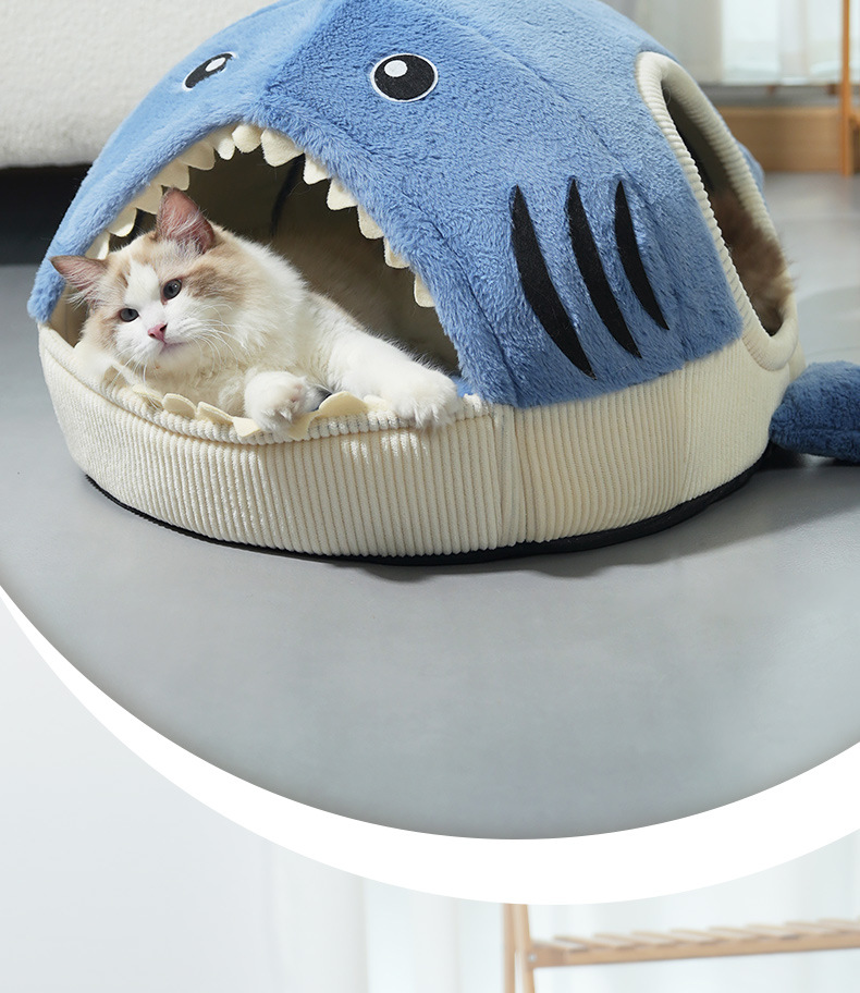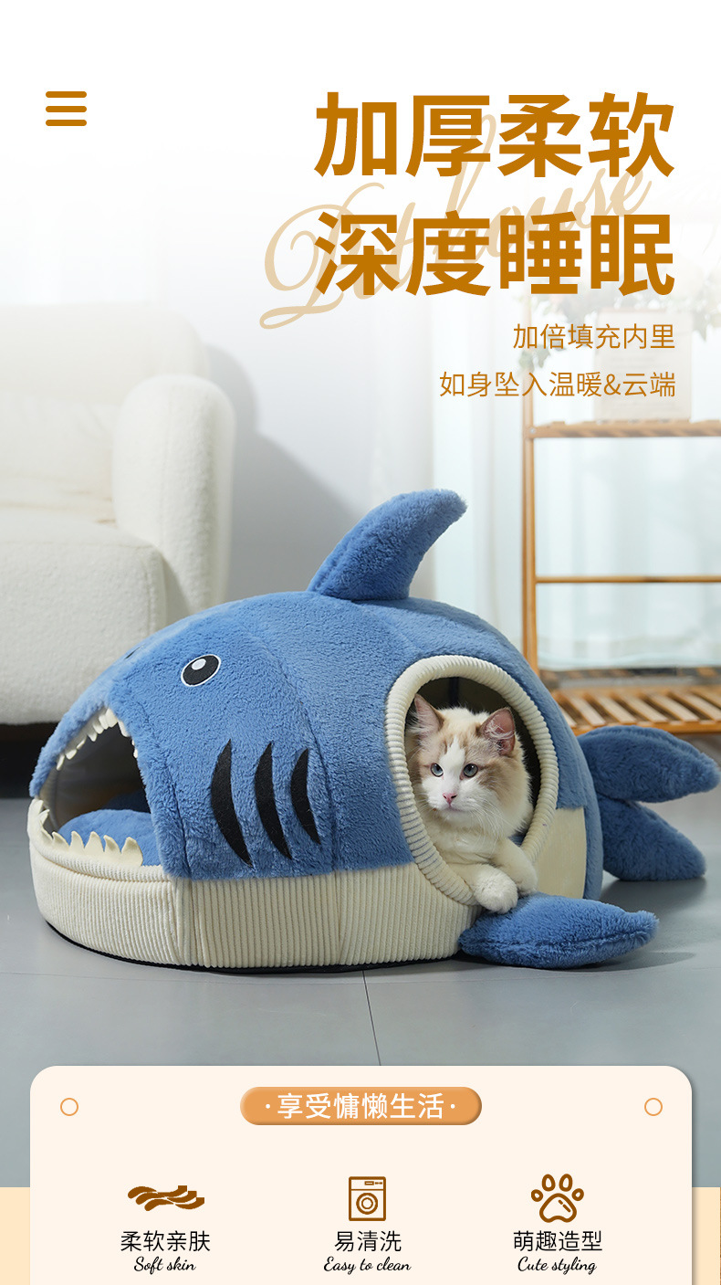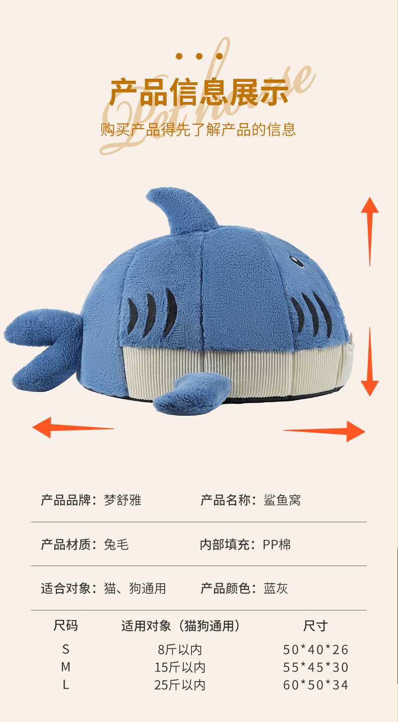 可爱鲨鱼猫窝狗窝毛绒玩具宠物四季通用加厚冬季保暖网红窝
