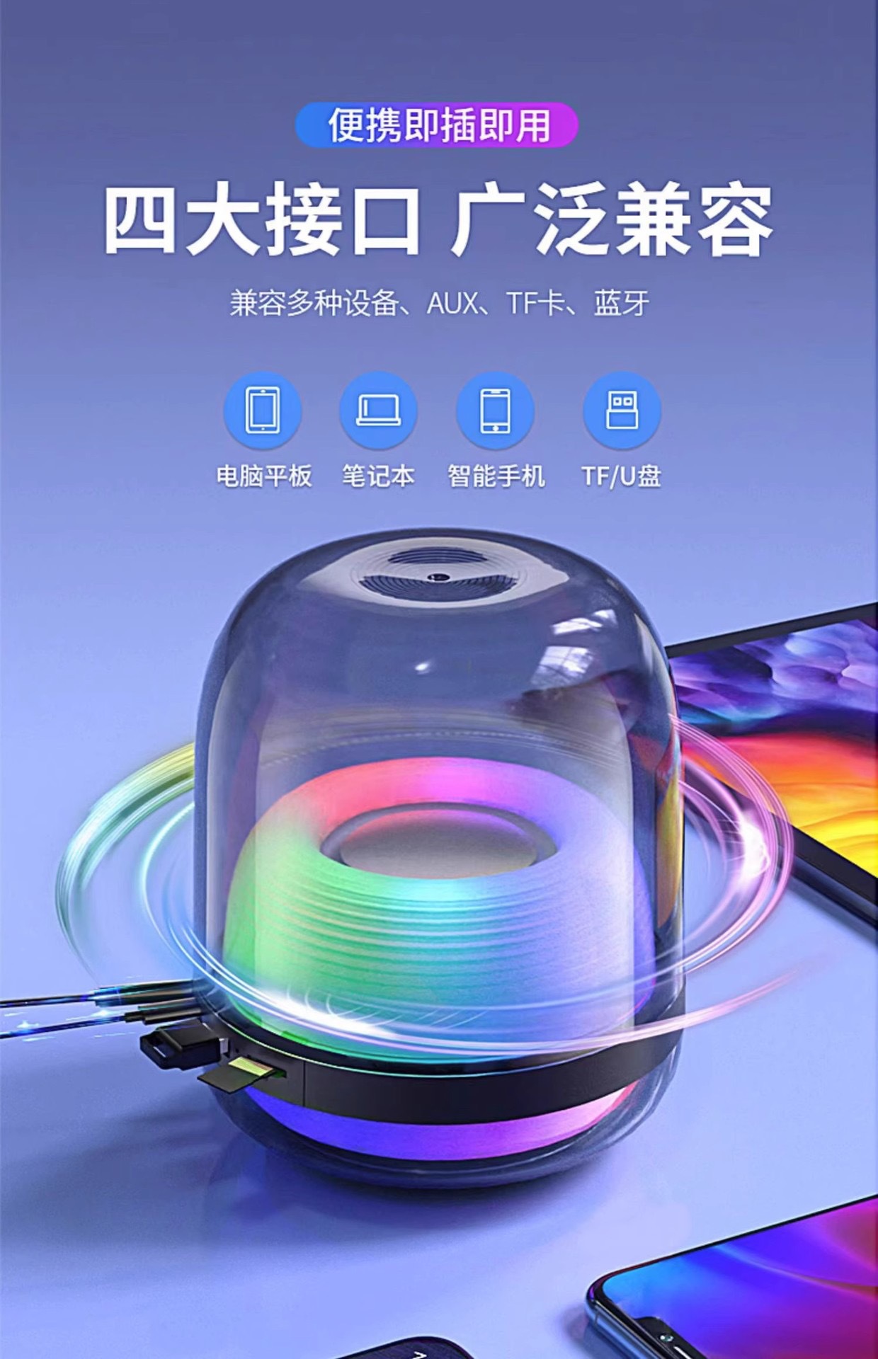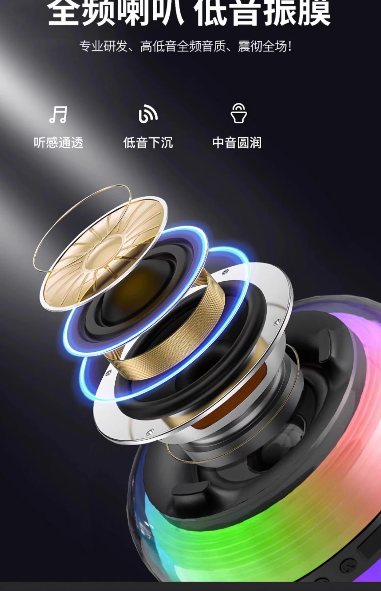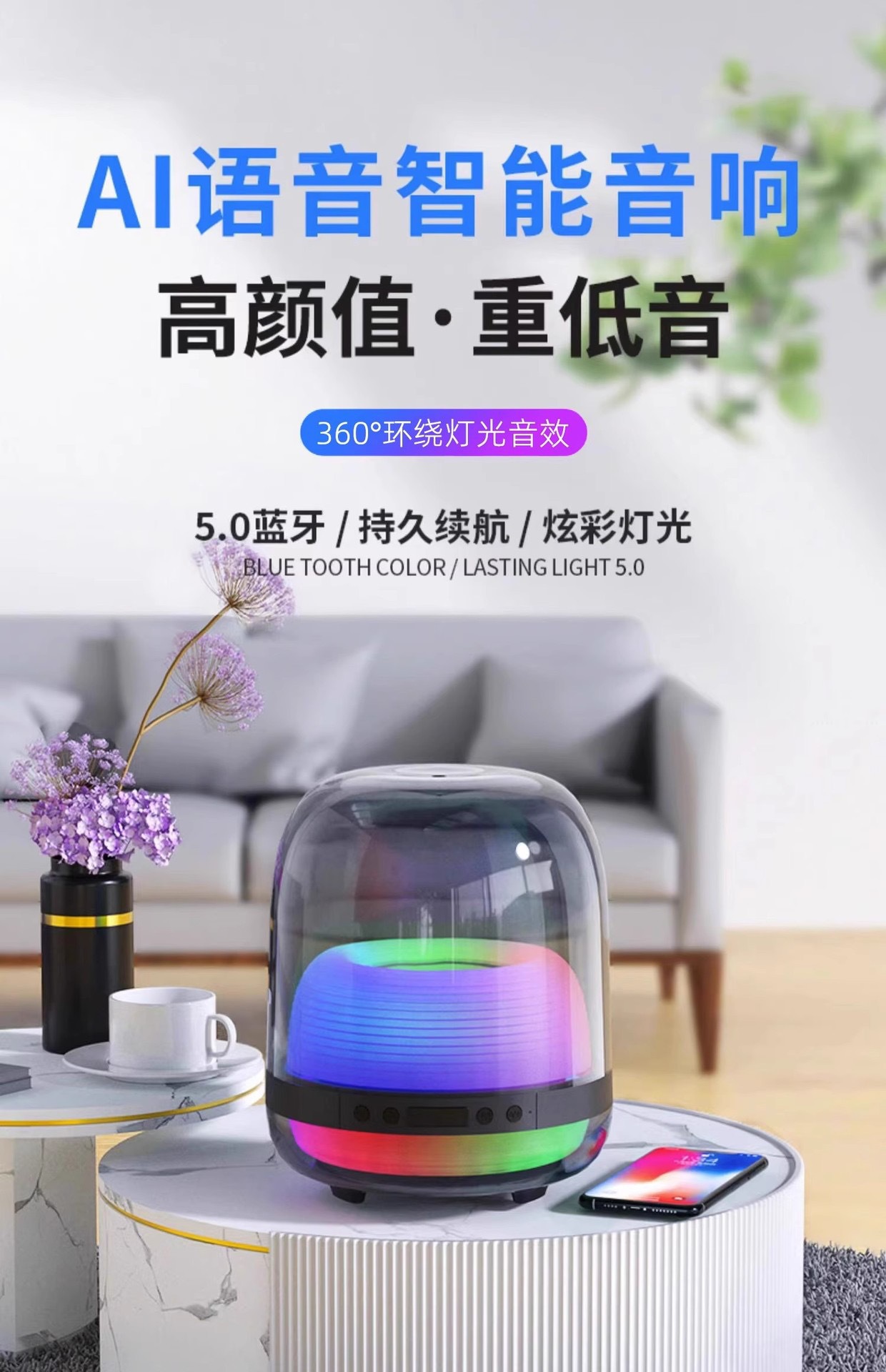 源头工厂L20无线智能蓝牙音响炫酷彩灯超低音炮居家桌面蓝牙音箱
