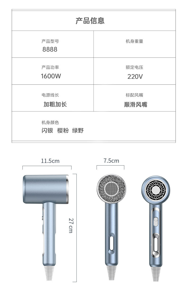 新款高颜值电吹风筒家用冷热风蓝光护发大功率吹风机源头厂家批发