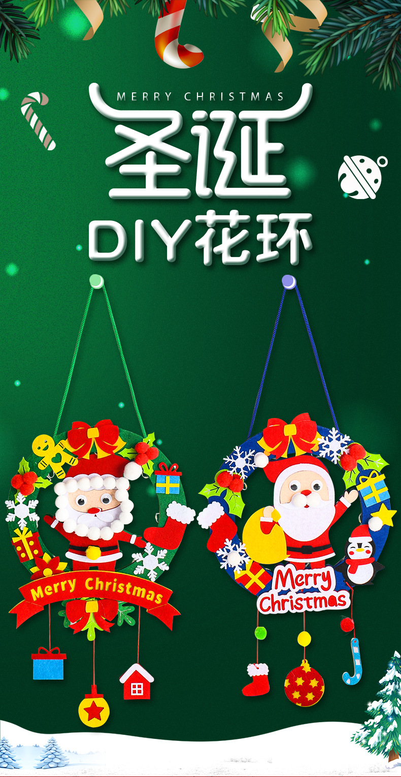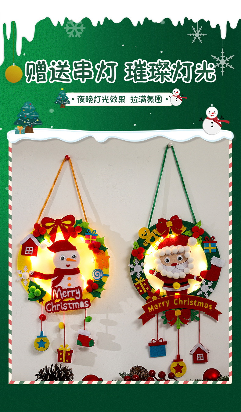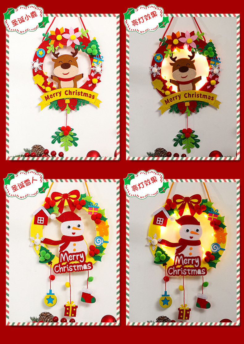 新款发光圣诞花环挂件挂饰幼儿园儿童手工diy制作材料圣诞节装饰