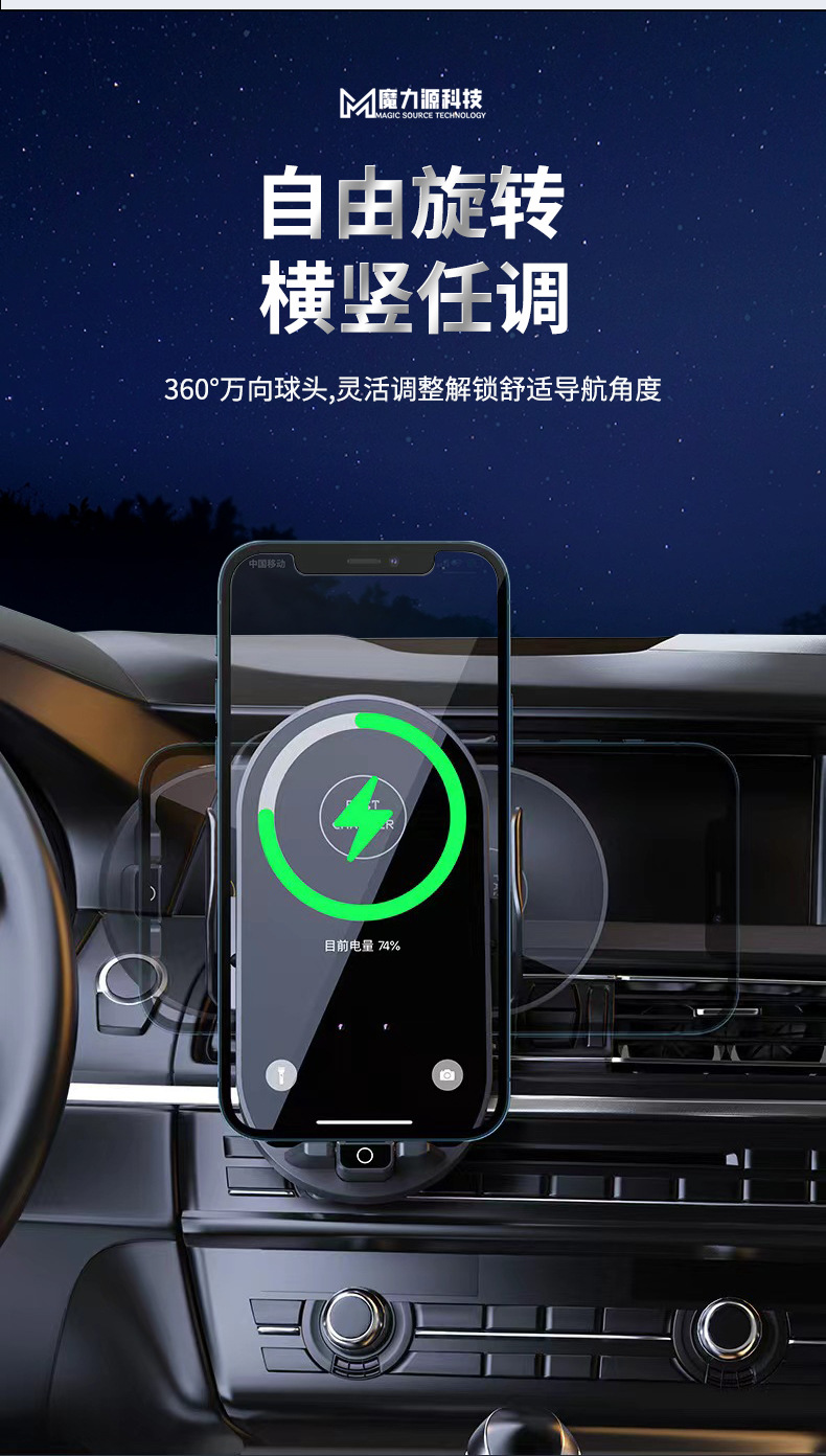 66W超级快充车载手机支架无线充 出风口导航手机支架汽车车载用