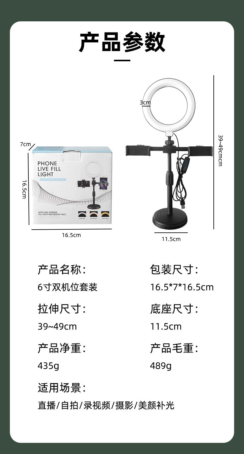 手机直播摄影支架桌面网红主播自拍美颜灯三色温圆盘双机位补光灯