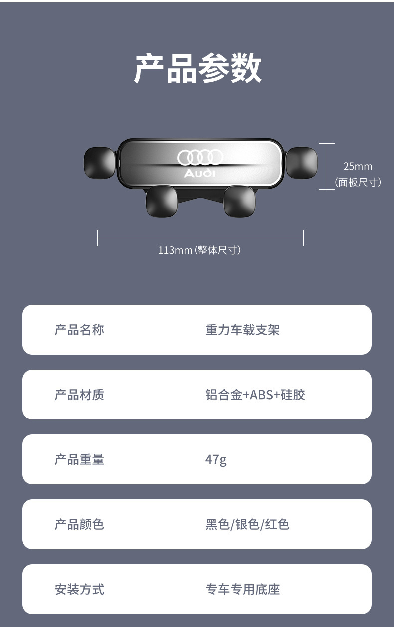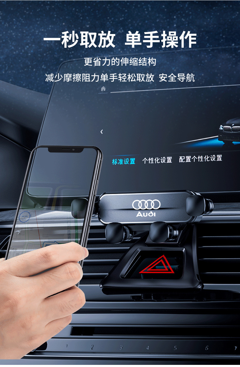 奥迪A6/A4L-A5/Q5/A1/A8L/Q5L/Q3/Q7专用导航车载重力手机支架