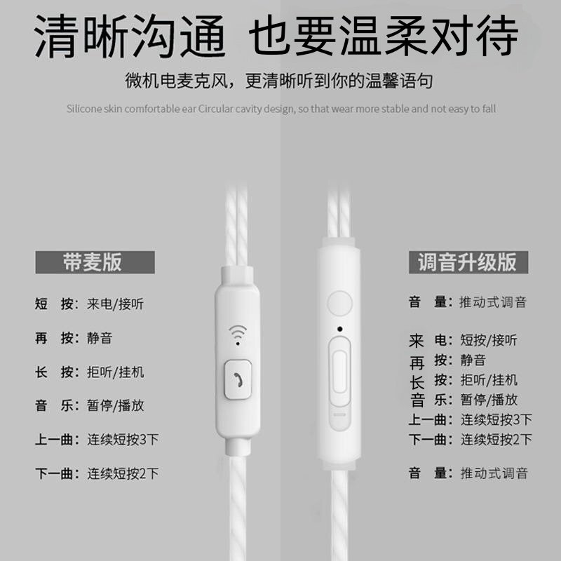 有线耳机适用OPPO华为vivo手机耳机可爱韩版女生K歌带话筒