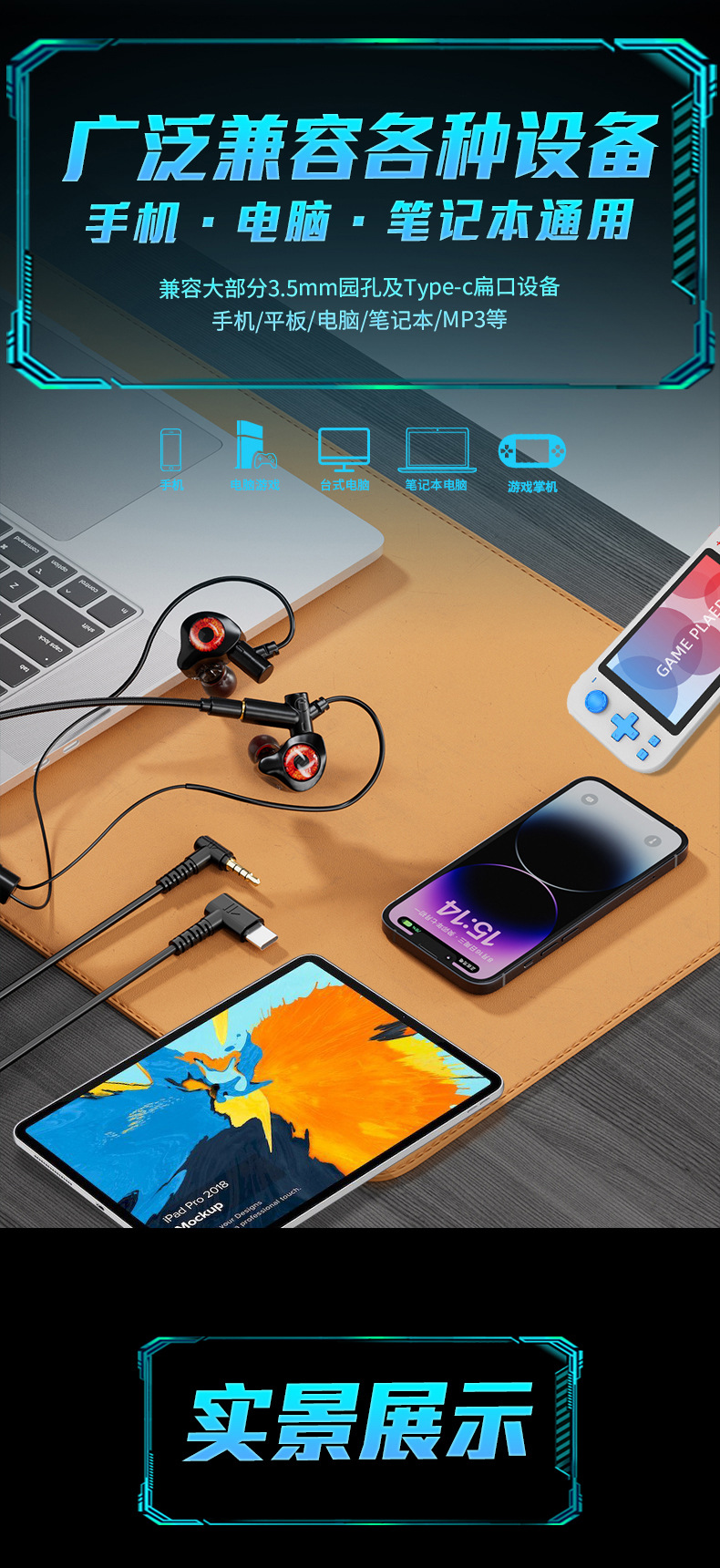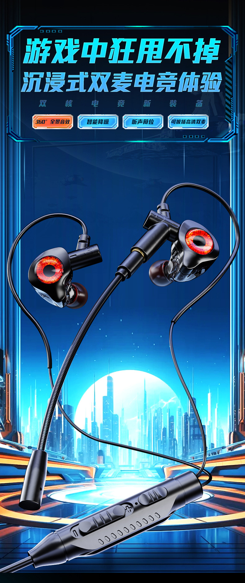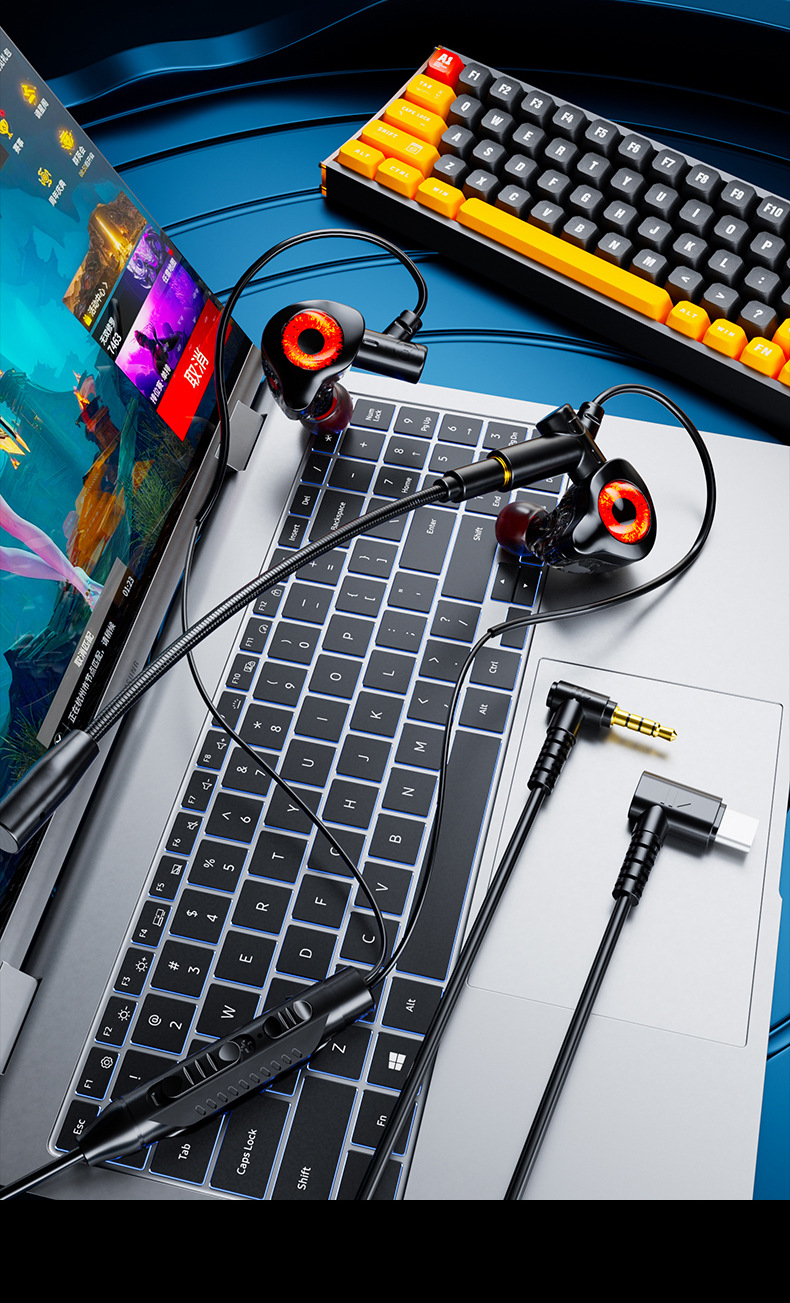Tpye-c双麦数字头 麦克风可拆卸电竞K歌游戏运动3.5线控有线耳机