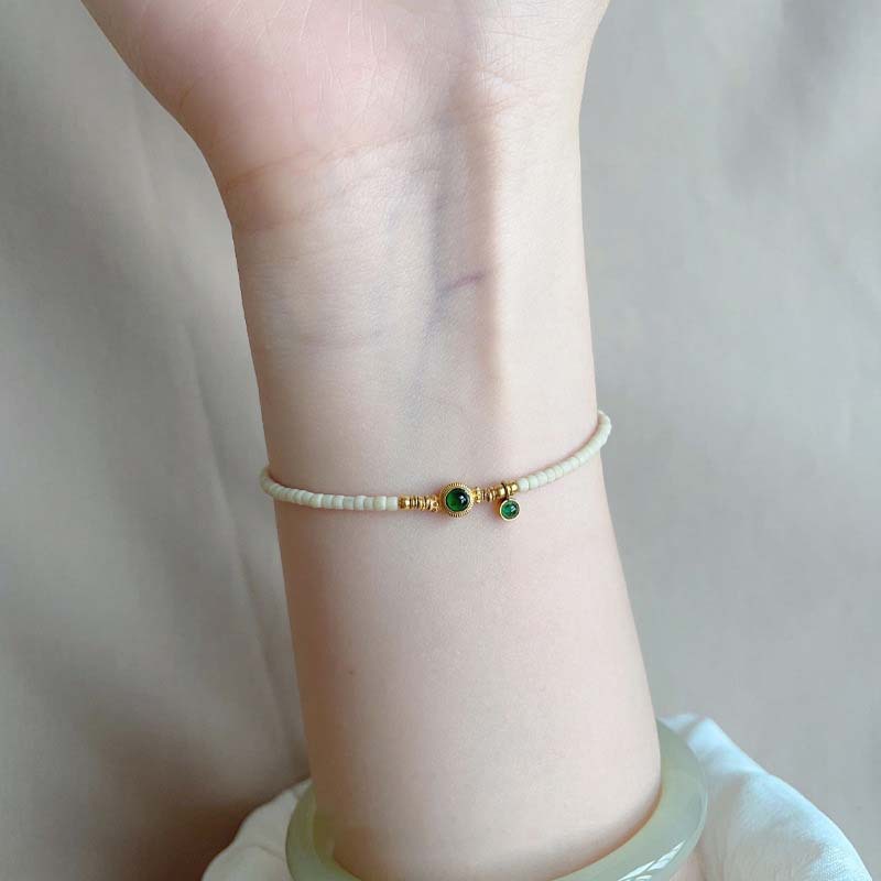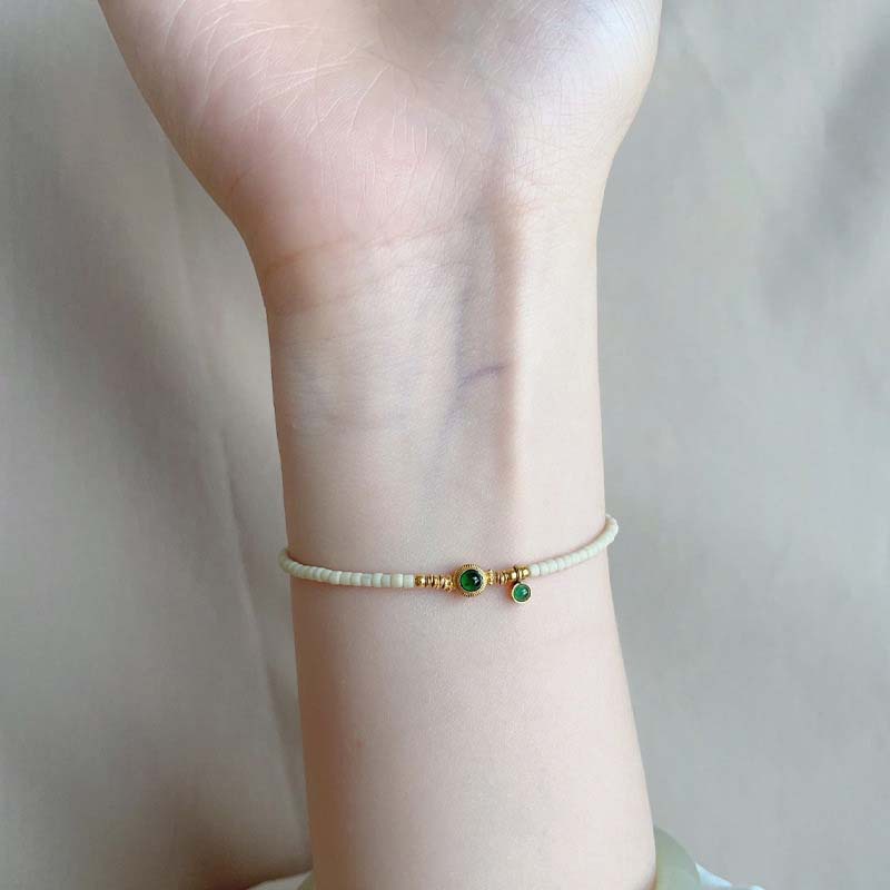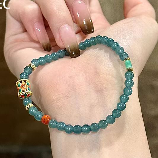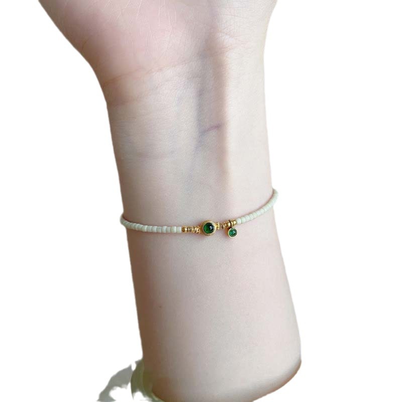 2025年新款名媛风高级轻奢复古翡翠绿色串珠手链小众设计手串礼物