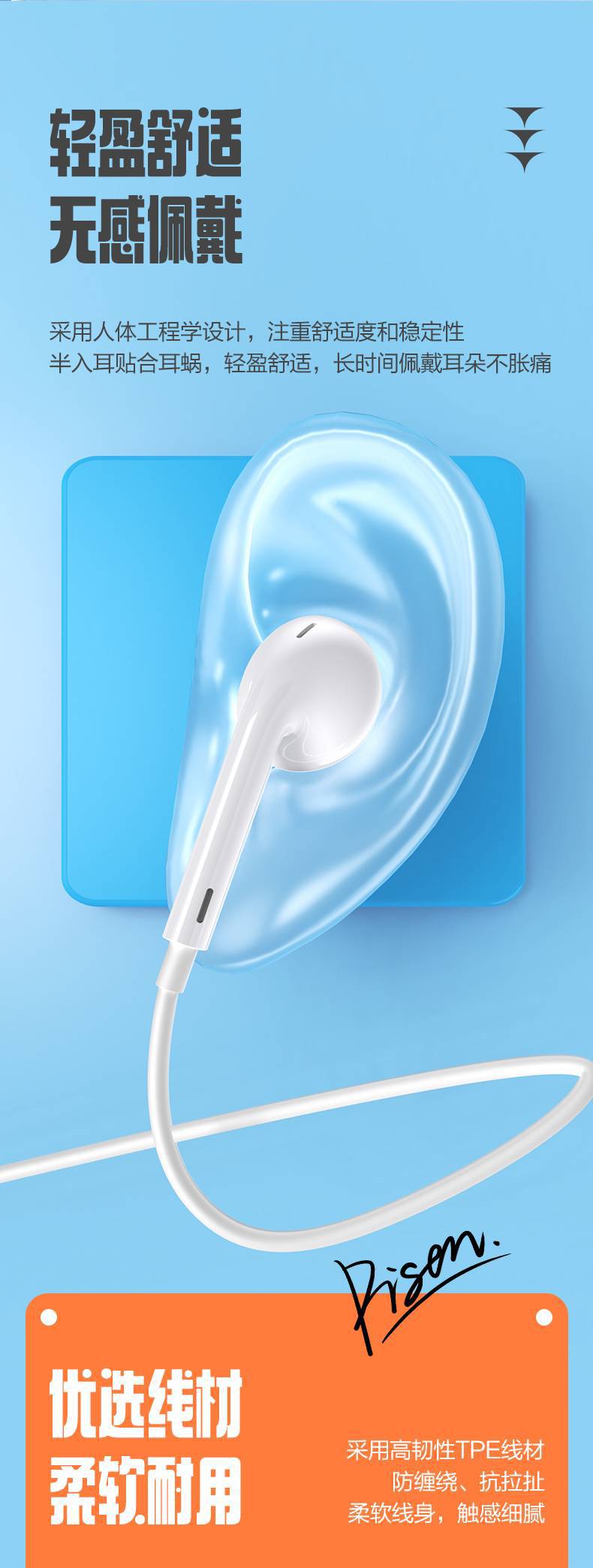 品胜有线耳机type-c入耳式 适用小米vivo苹果15数字线控耳塞批发