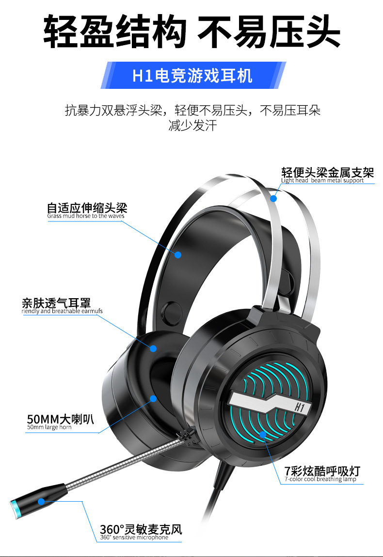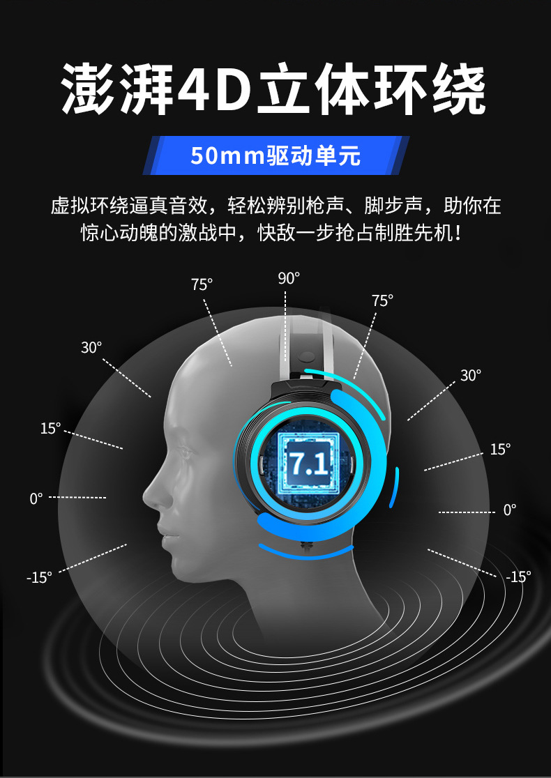 电脑耳机头戴式耳麦电竞游戏台式笔记本USB有线麦克风手机7.1声道