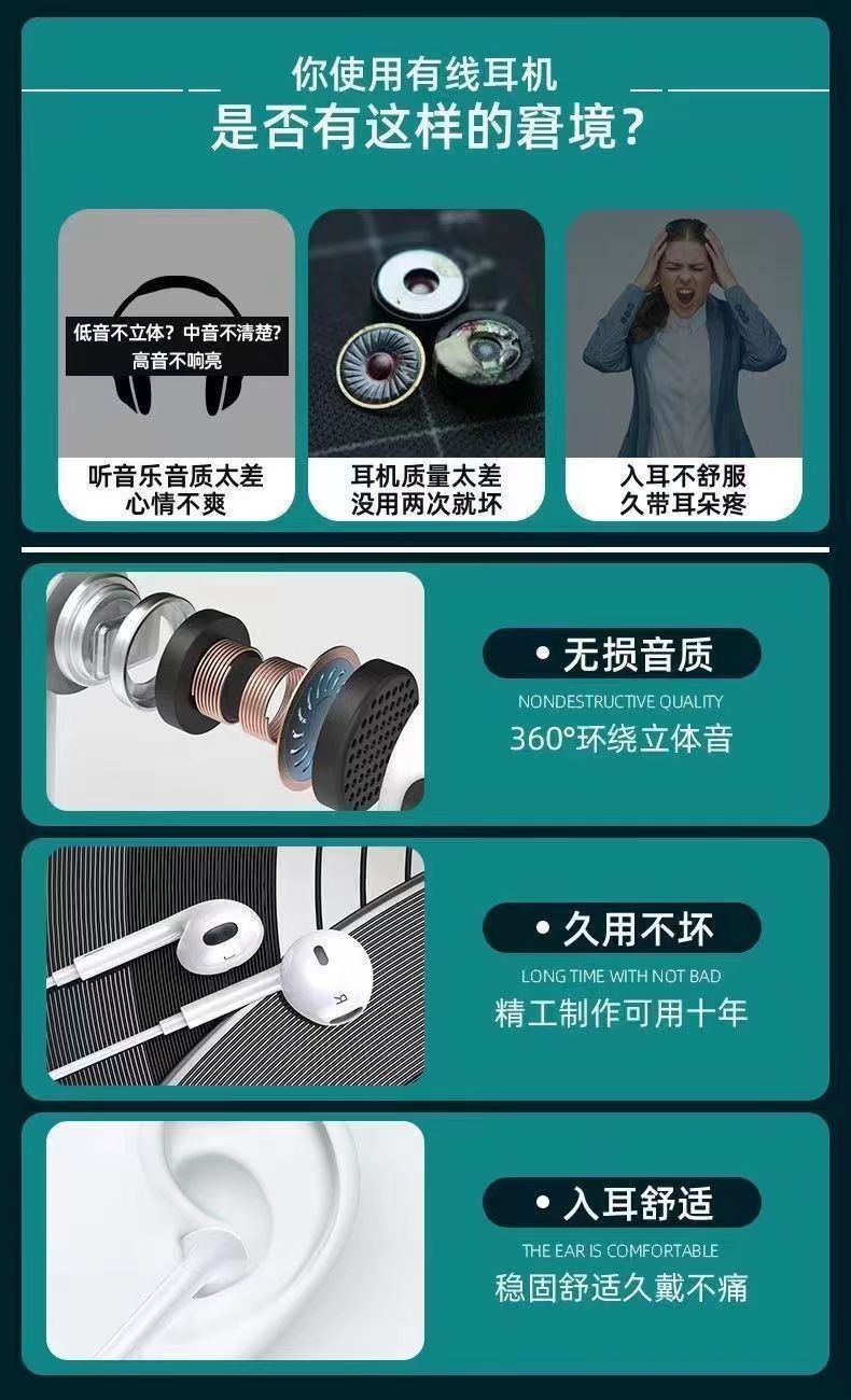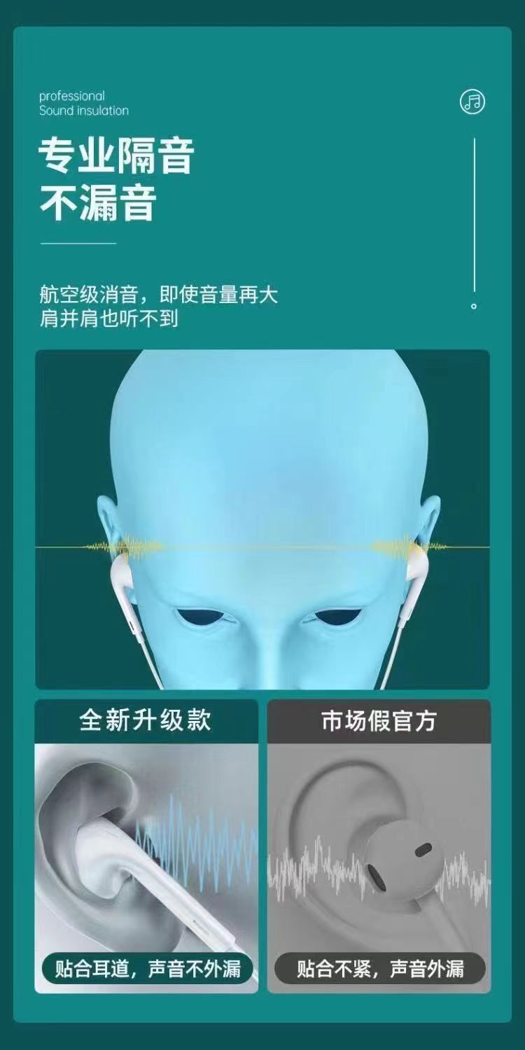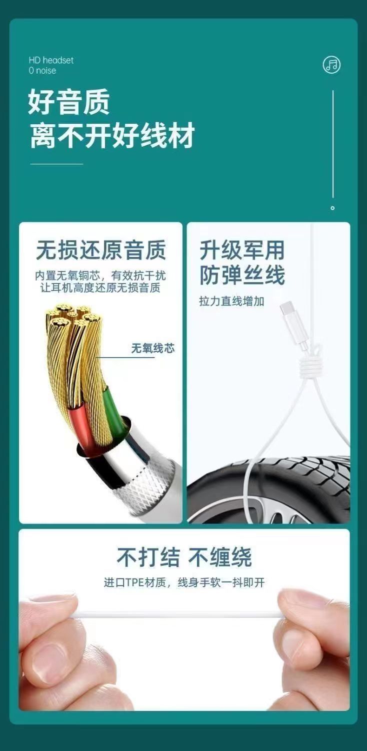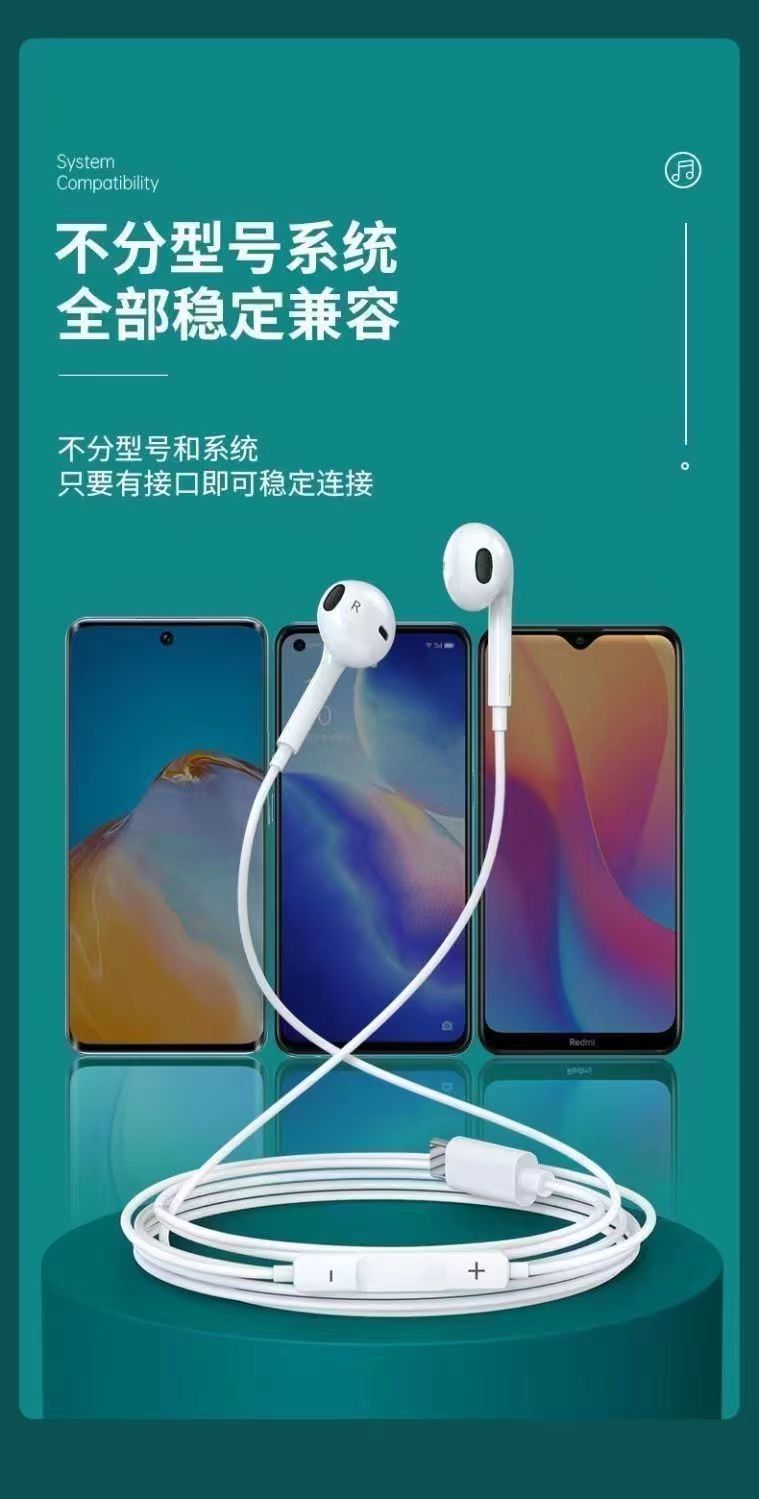 热卖适用iPhone有线耳机圆孔带麦苹果安卓type-c/oppo 华为入耳式