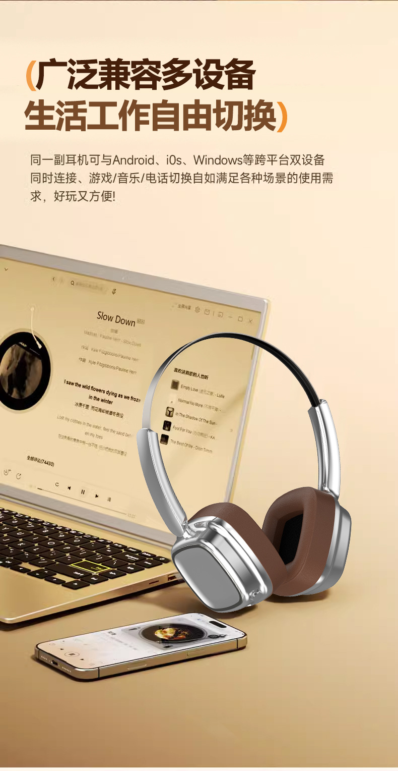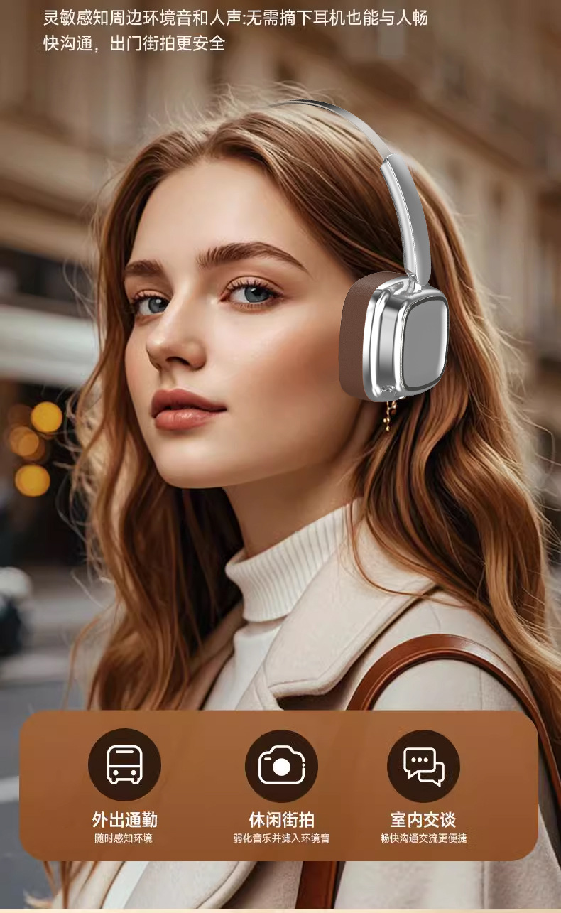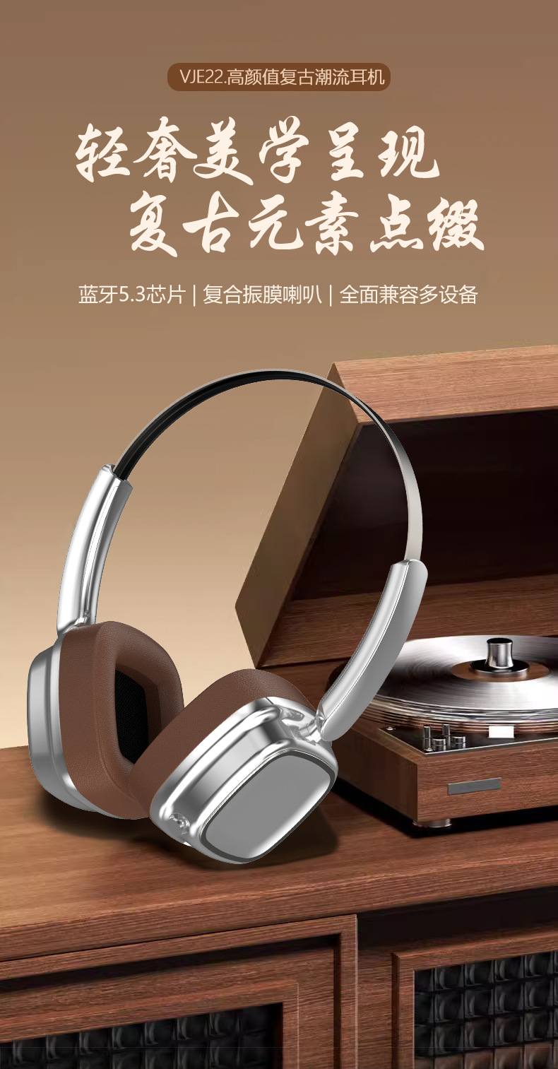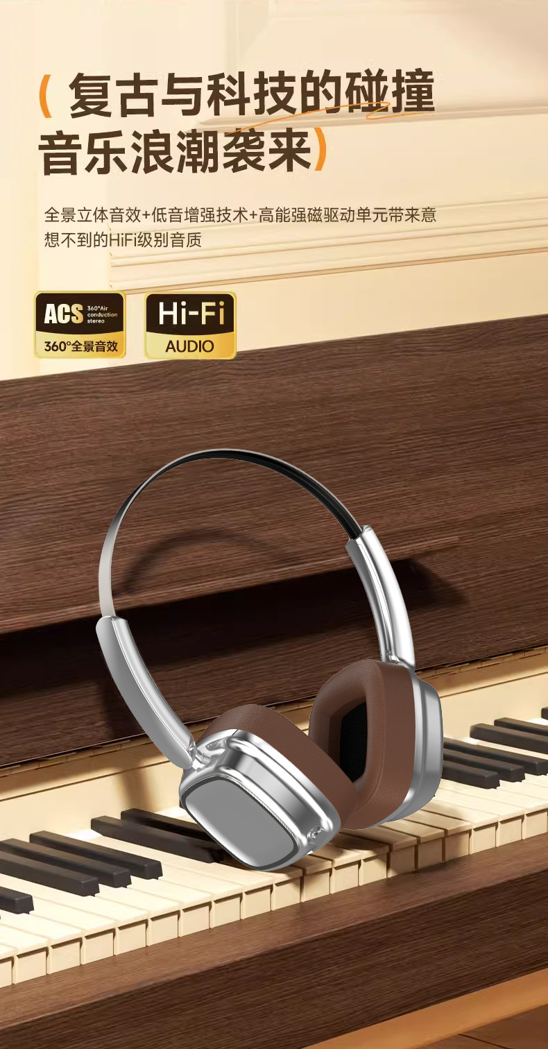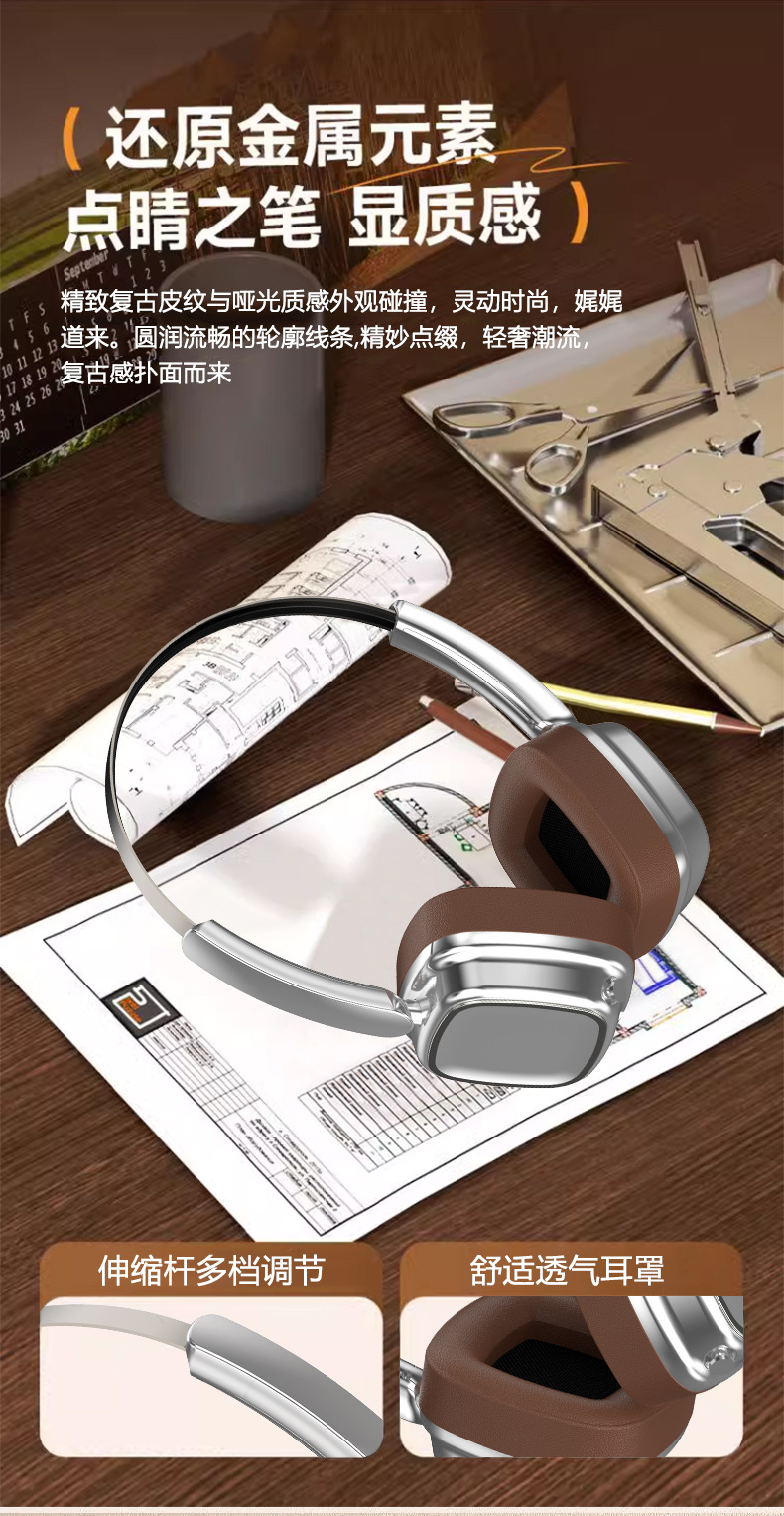 新款复古风金属头戴式耳机无线蓝牙5.4音乐运动穿搭耳机跨境批发